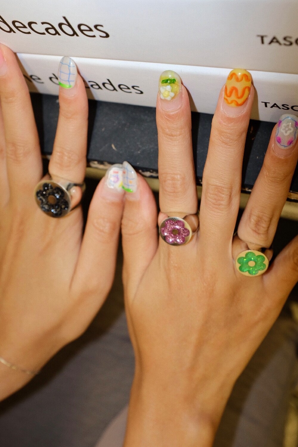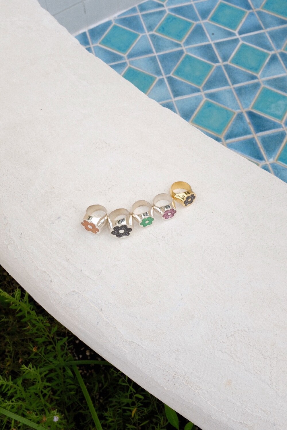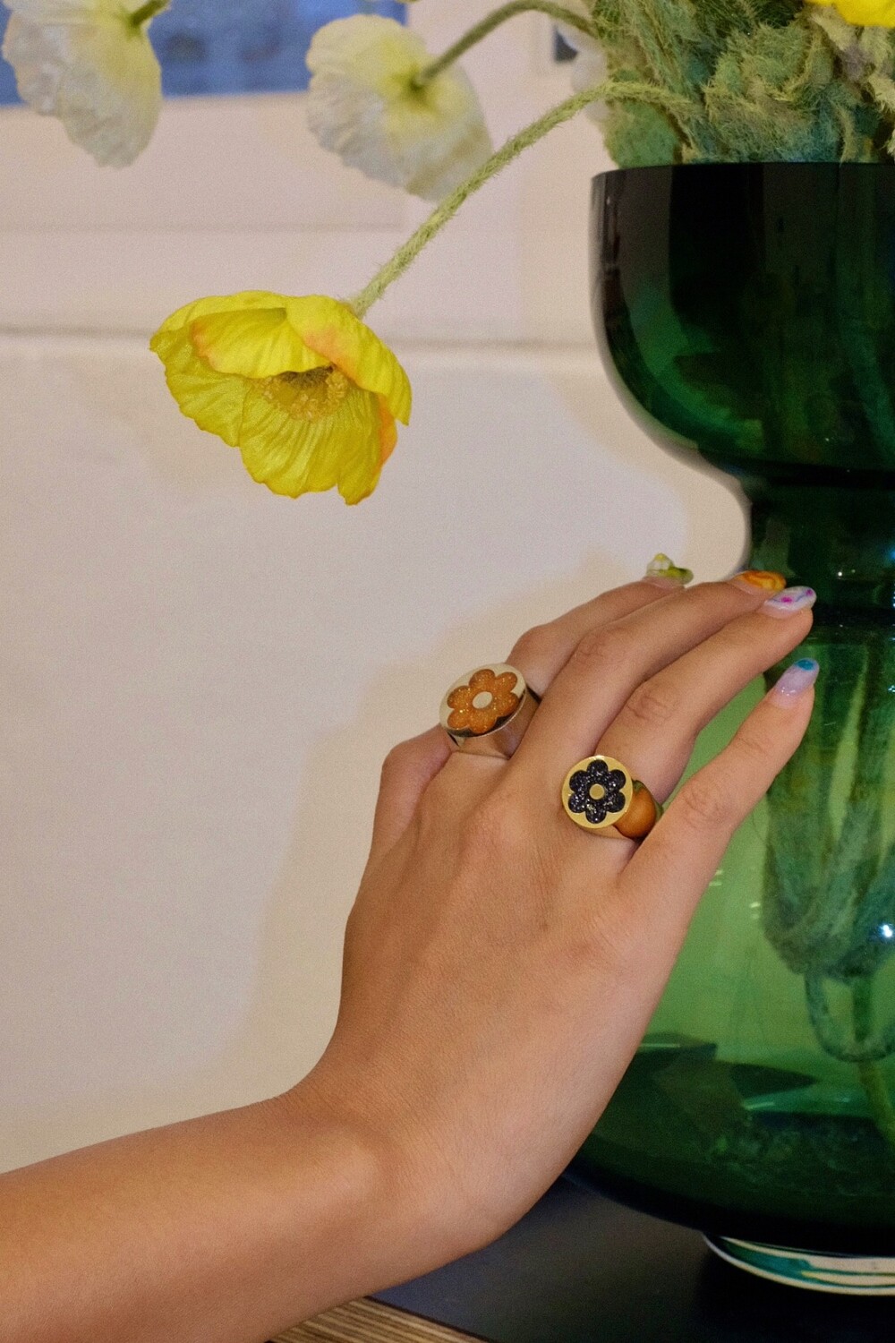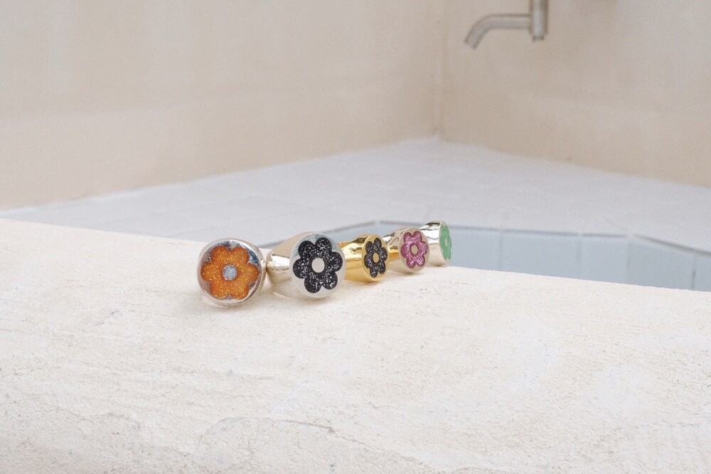 반짝이는 글리터가 가득 차있는 꽃이 포인트인 키치한 무드의 반지입니다 ⯌⯌.