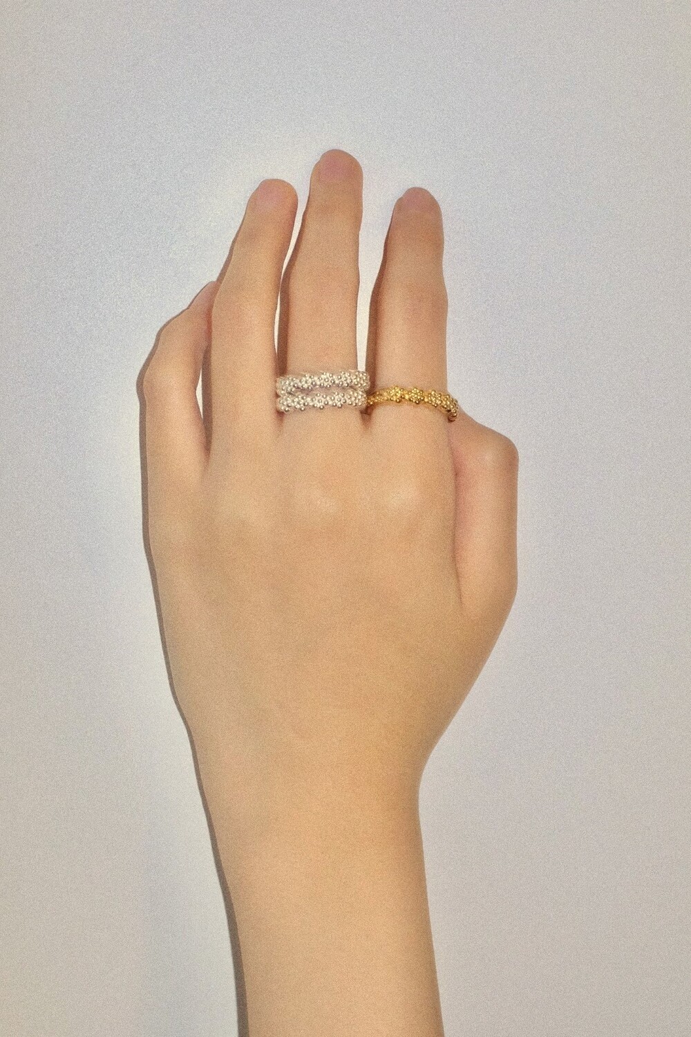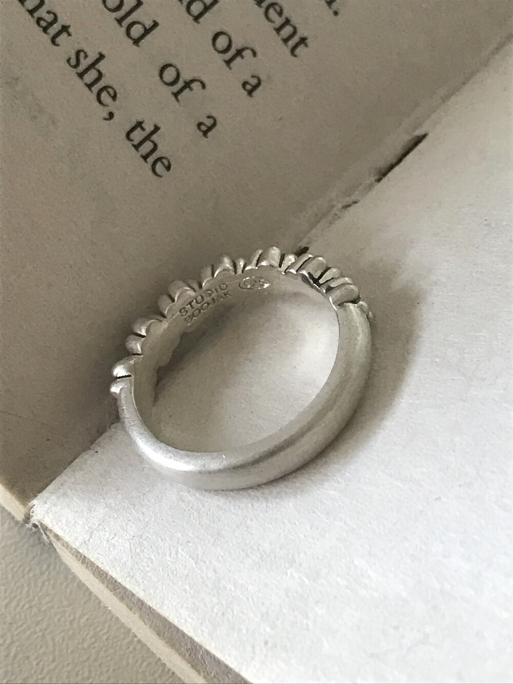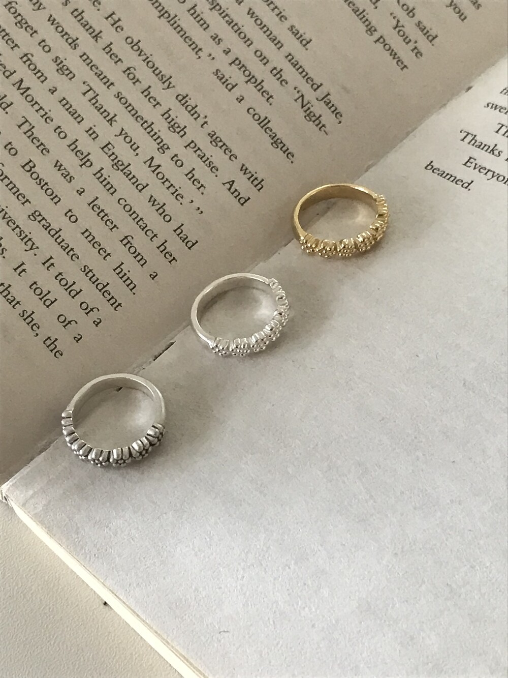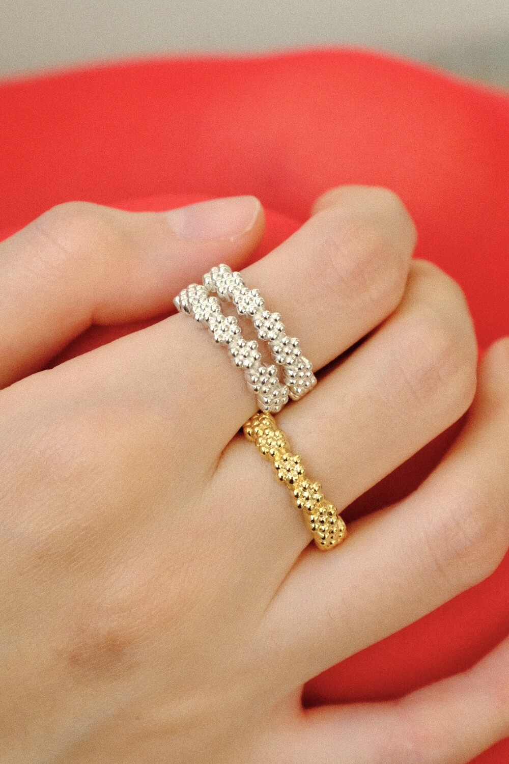 7개의 꽃이 연속적으로 배열된 디자인의 반지 입니다.