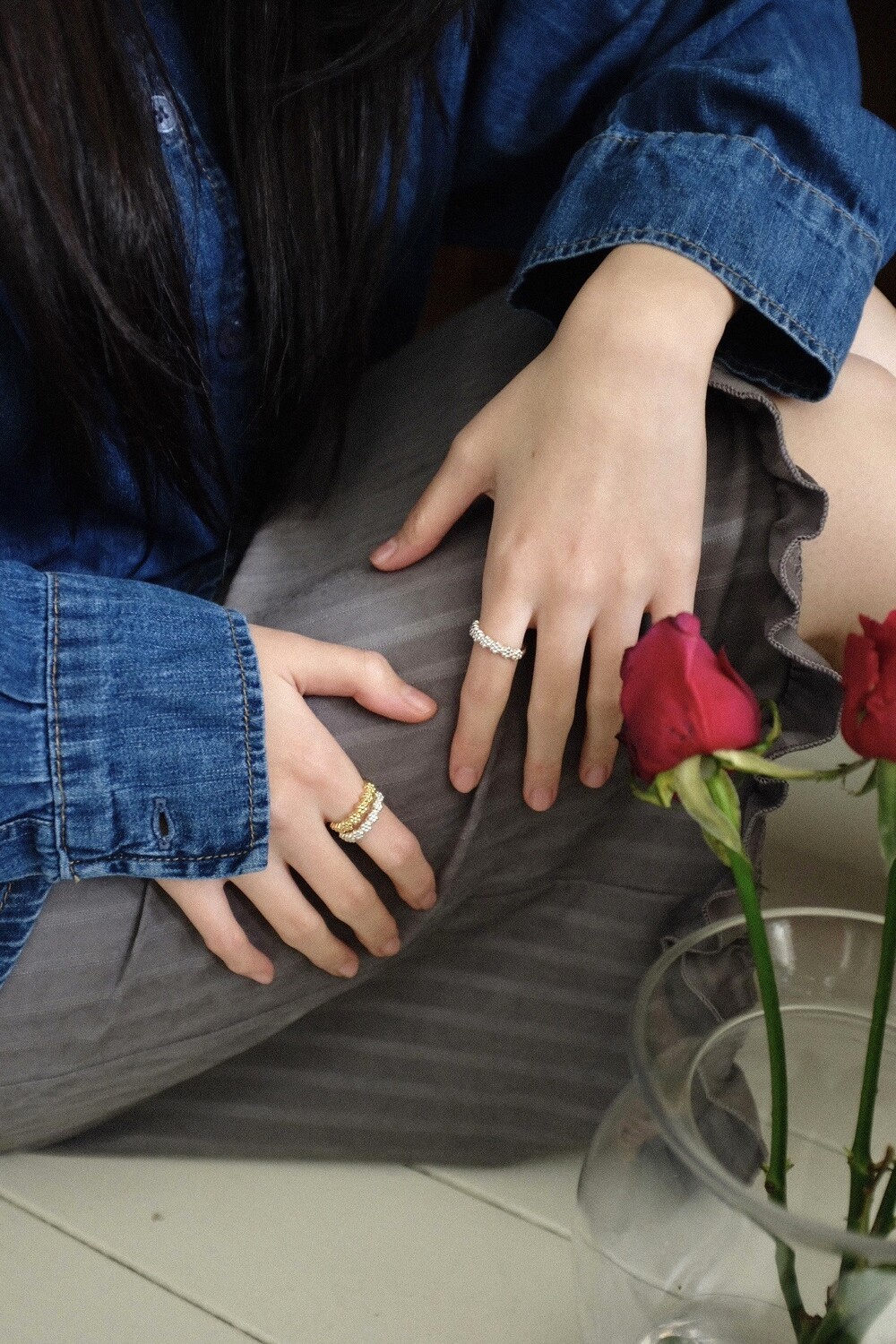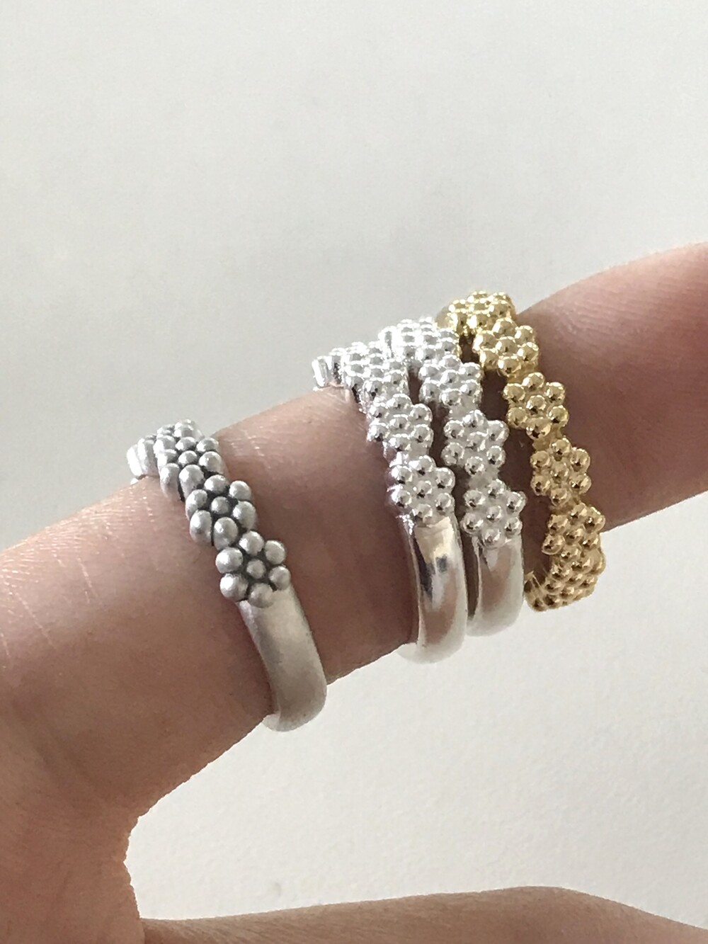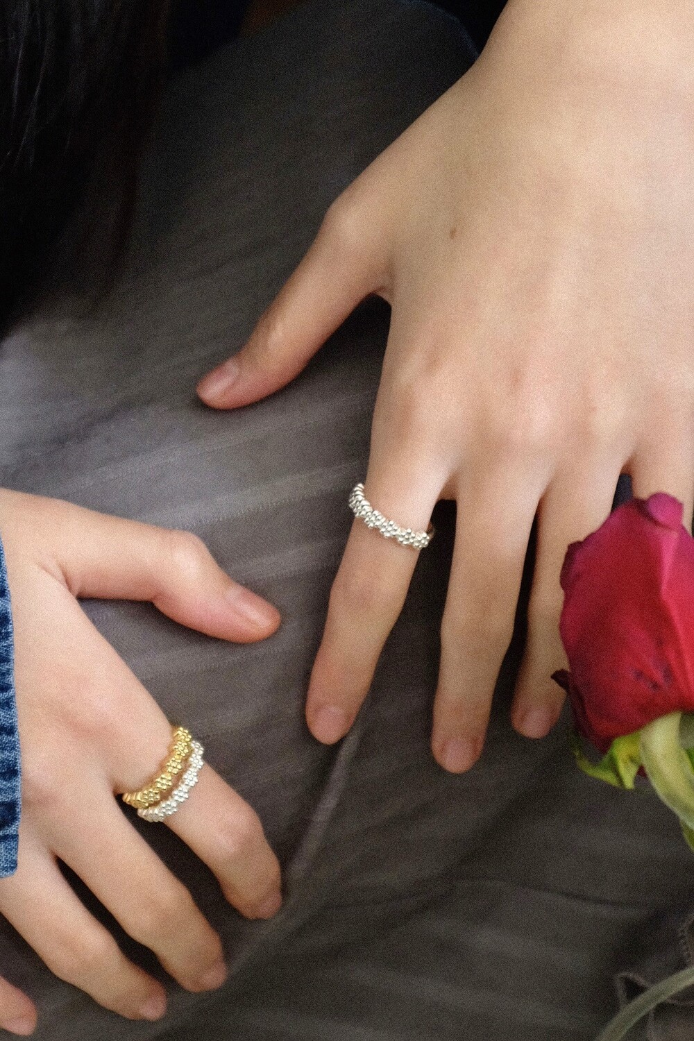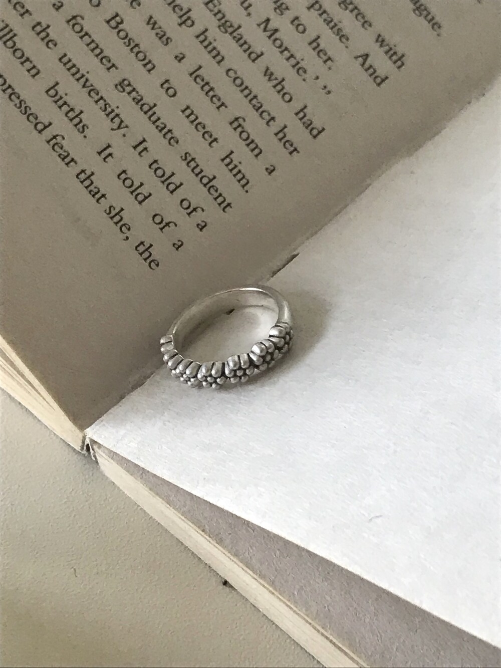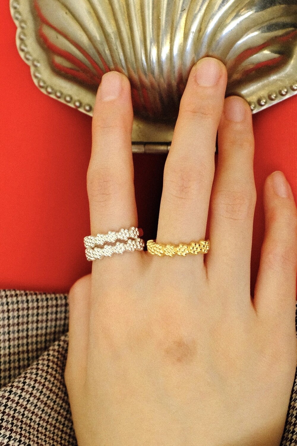 7개의 꽃이 연속적으로 배열된 디자인의 반지 입니다.