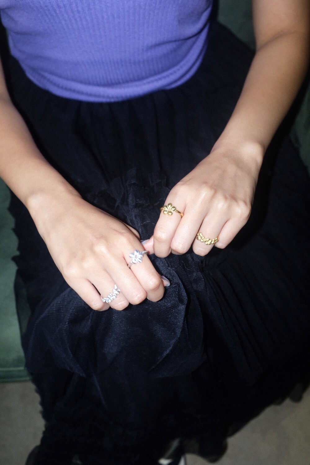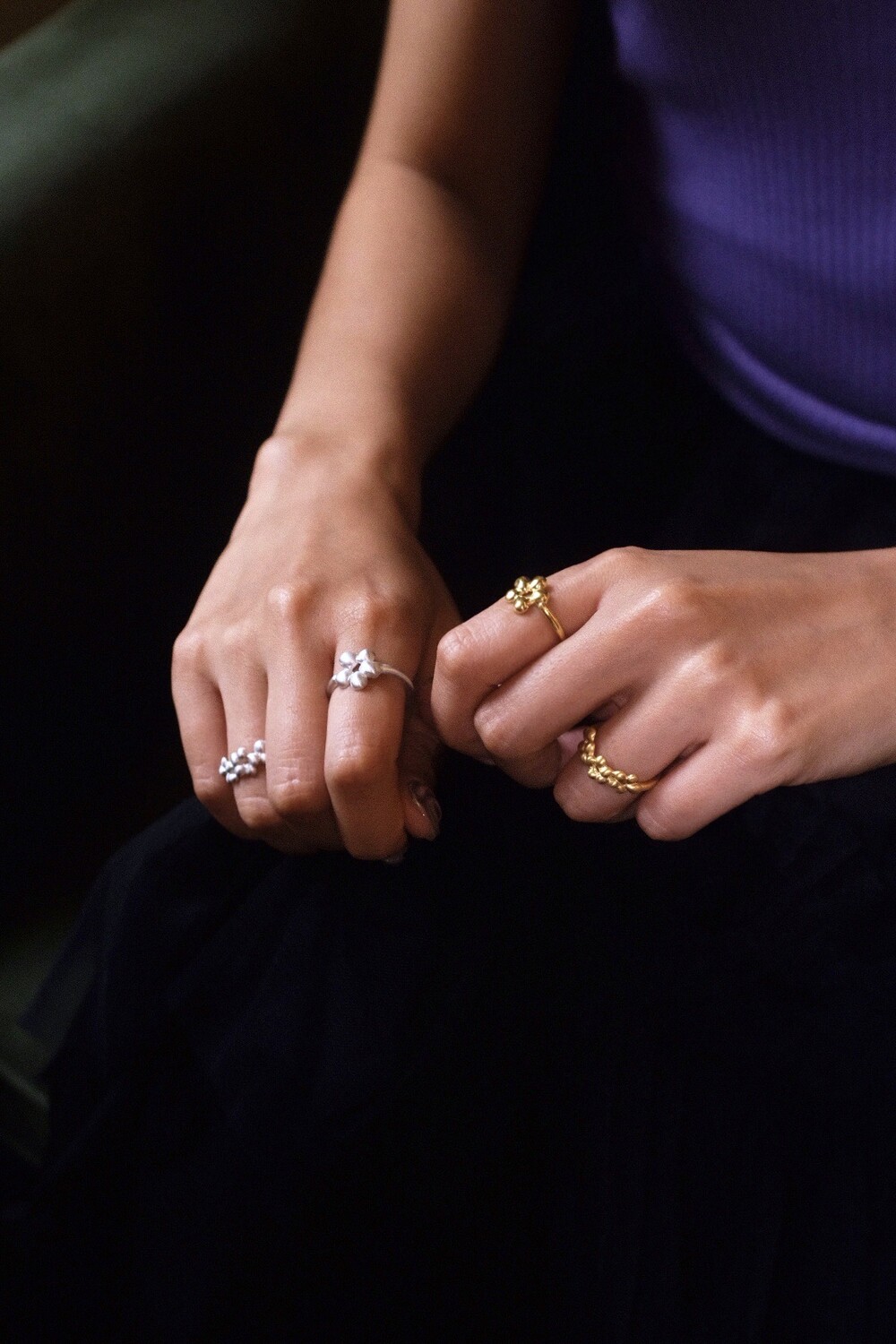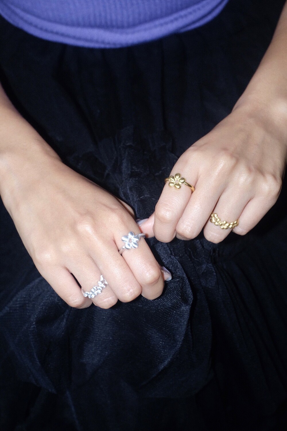 꽃을 모티브로 하여 여성스러울 수 있는 디자인을 금속이 되기 전, 왁스의 질감을 살려 러프함을 추가해 제작된 제품입니다.