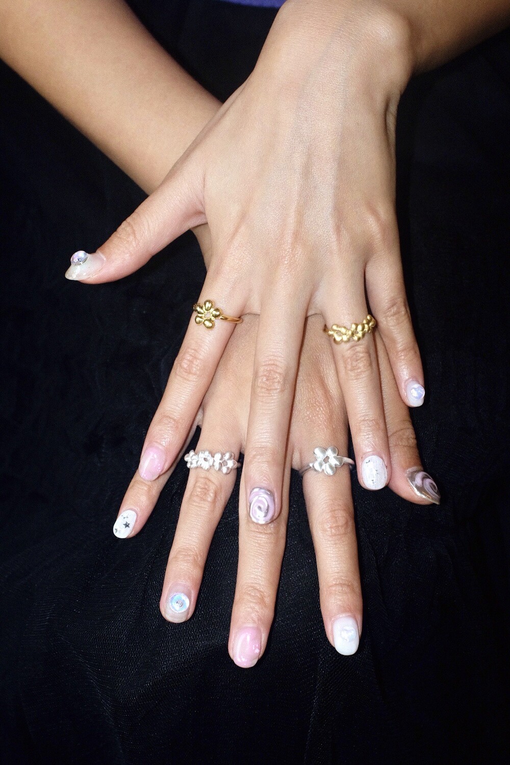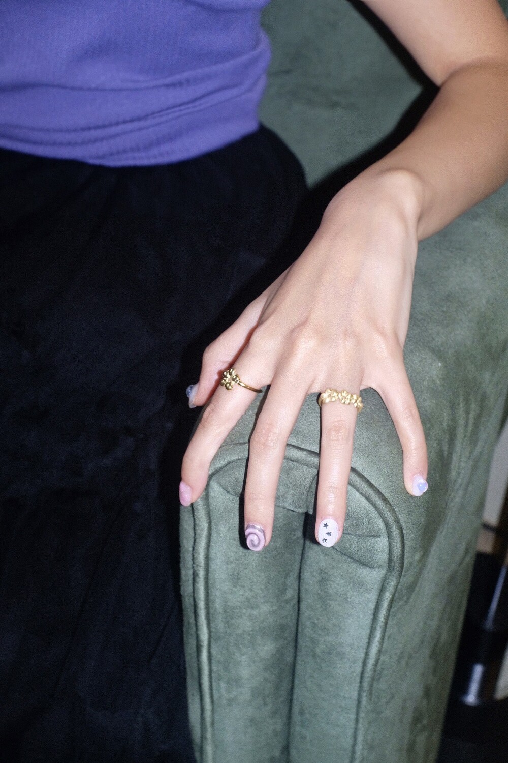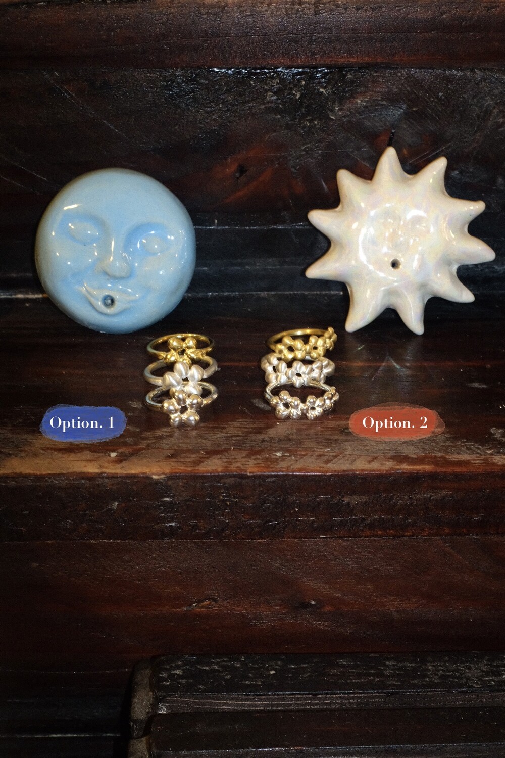 꽃을 모티브로 하여 여성스러울 수 있는 디자인을 금속이 되기 전, 왁스의 질감을 살려 러프함을 추가해 제작된 제품입니다.