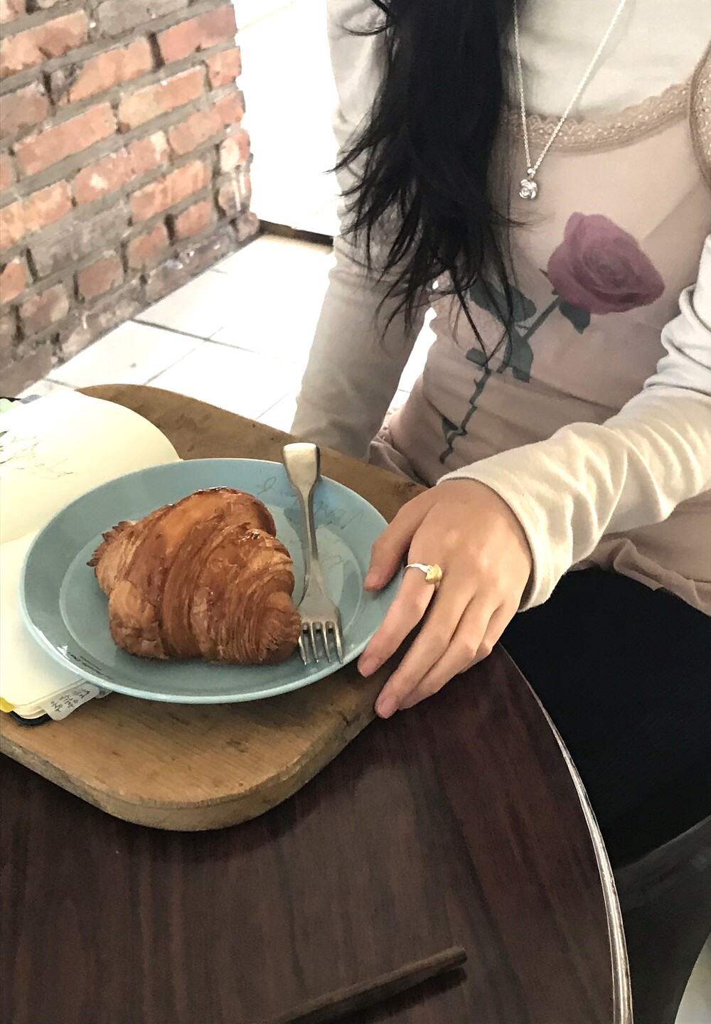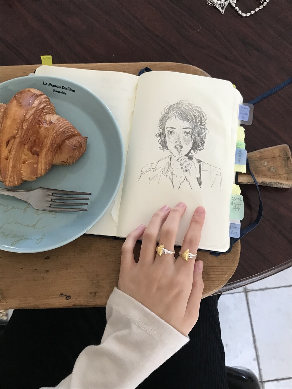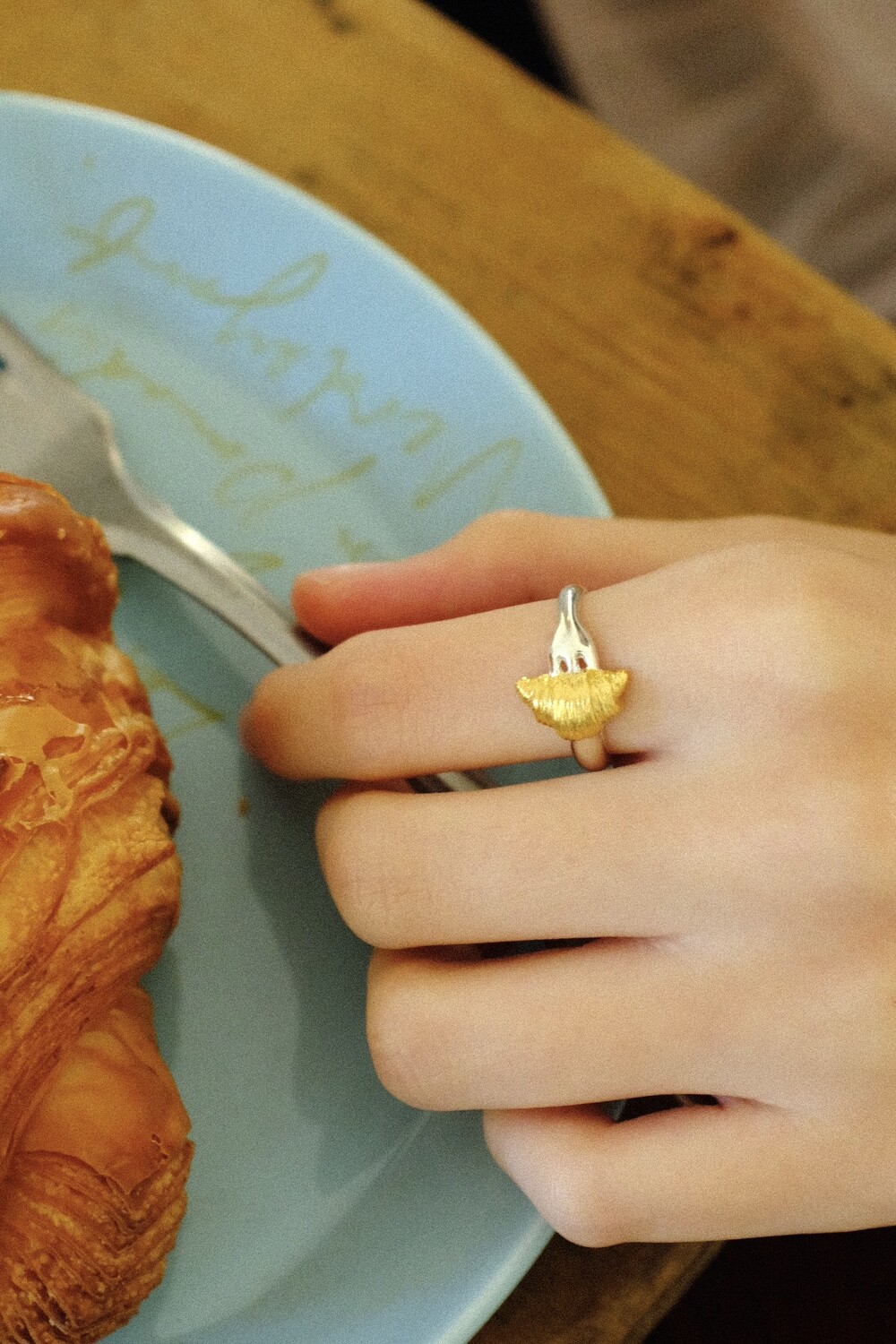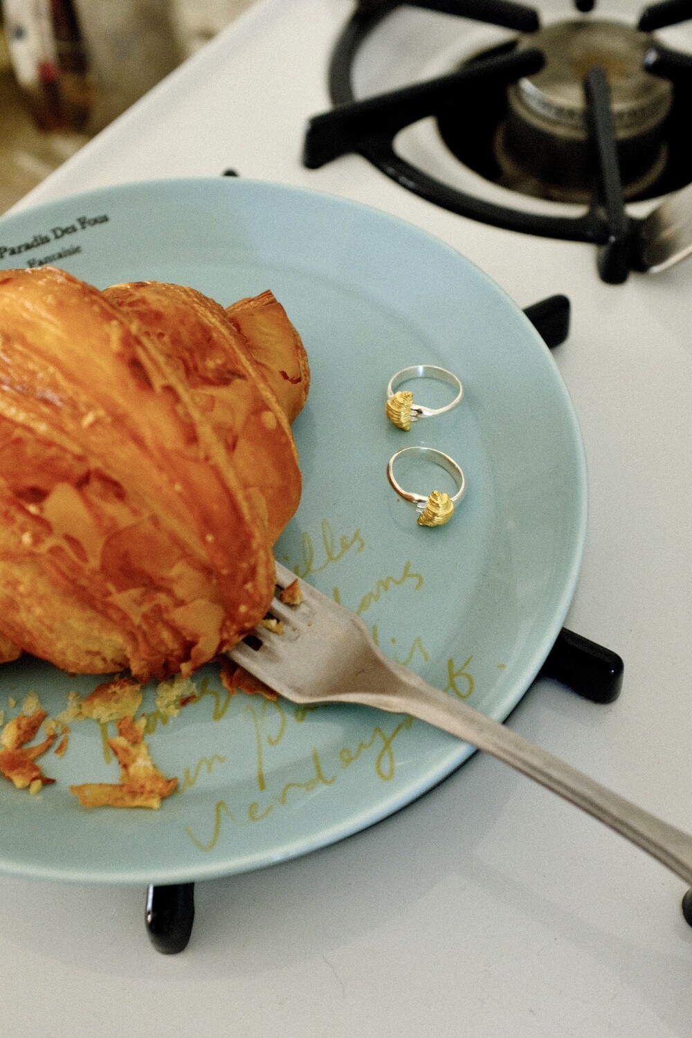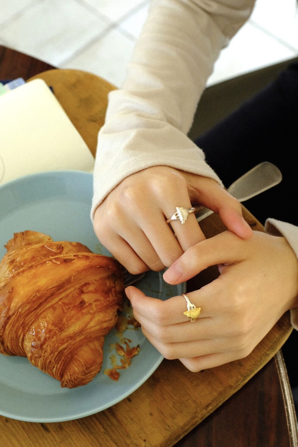 크로와상 빵을 포크로 콕 찍은 모양으로 제작된 반지 입니다.