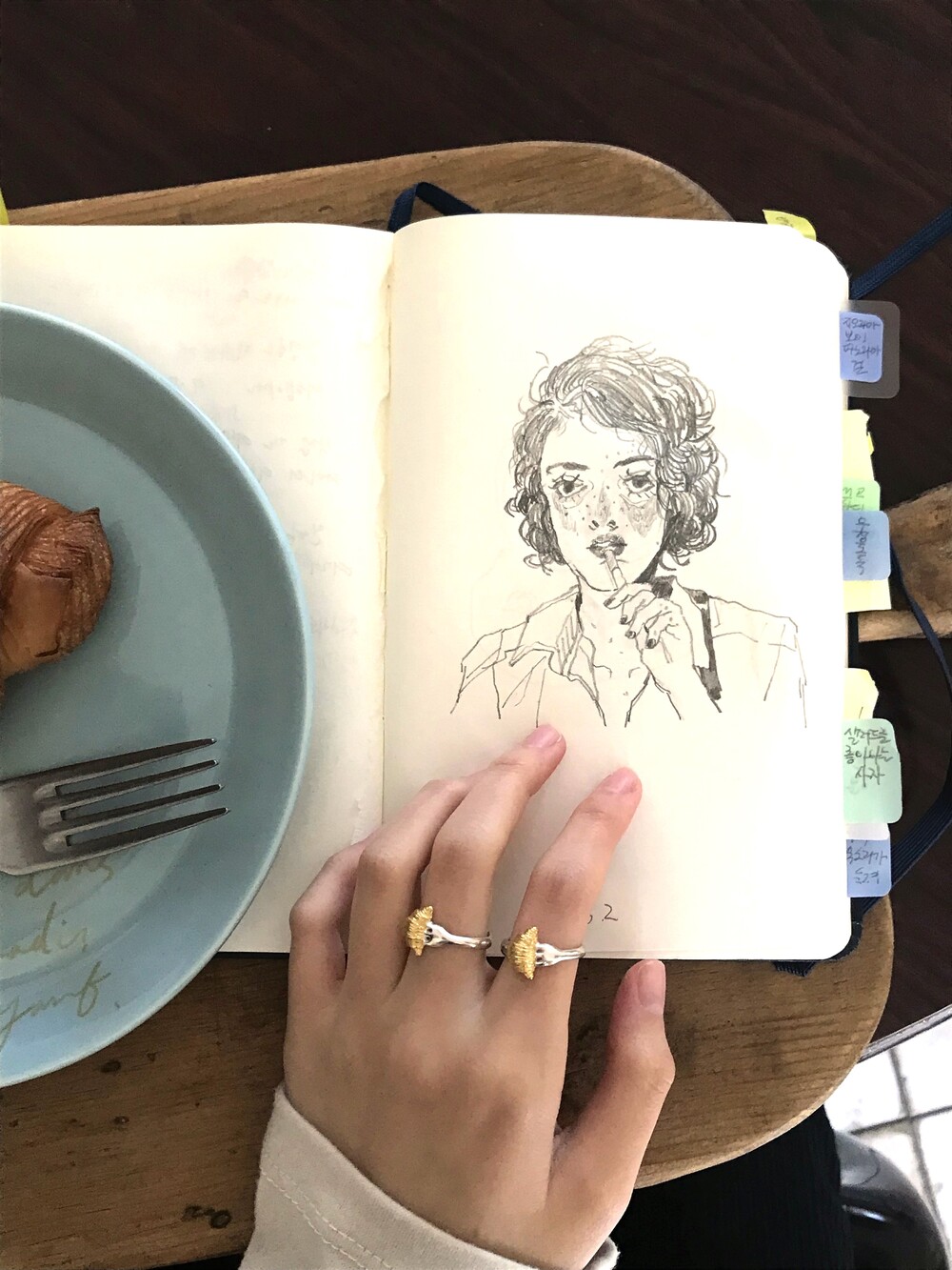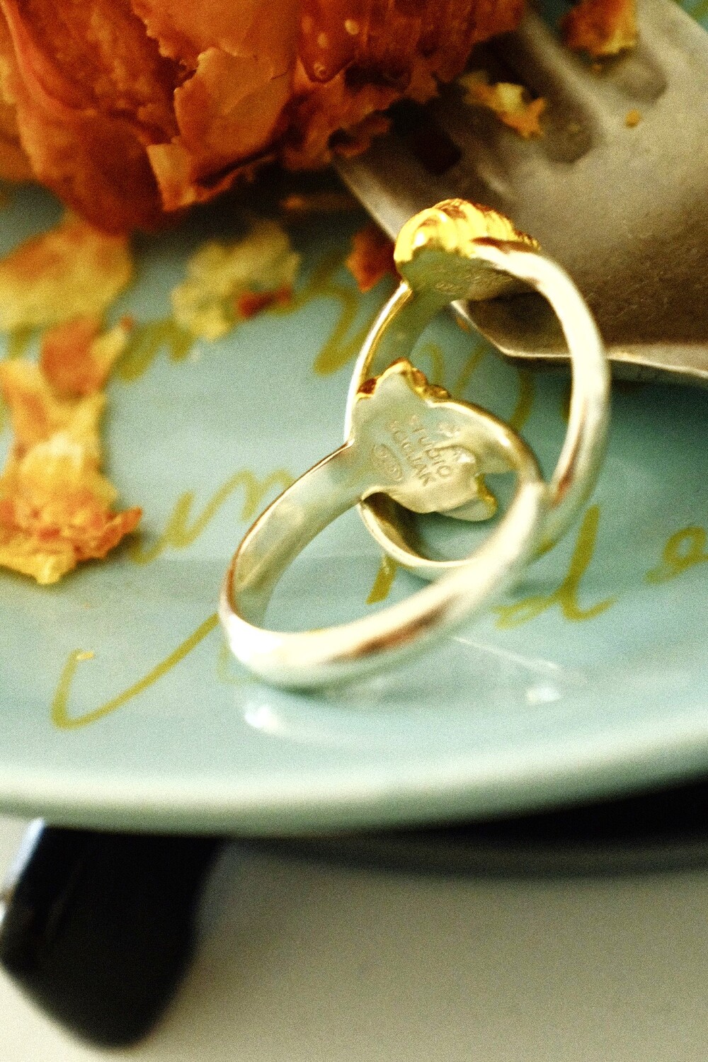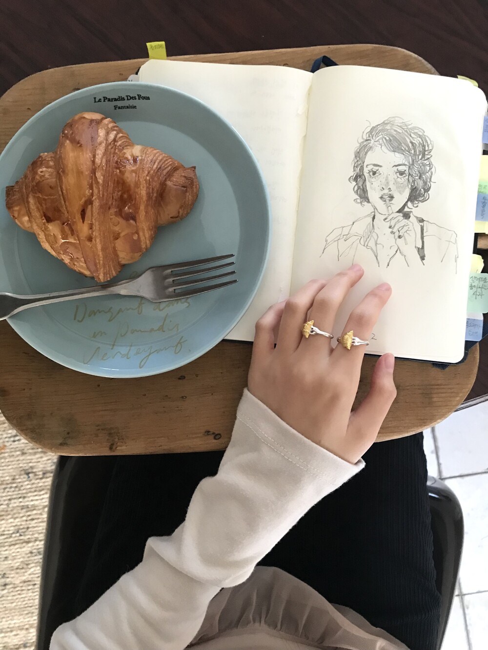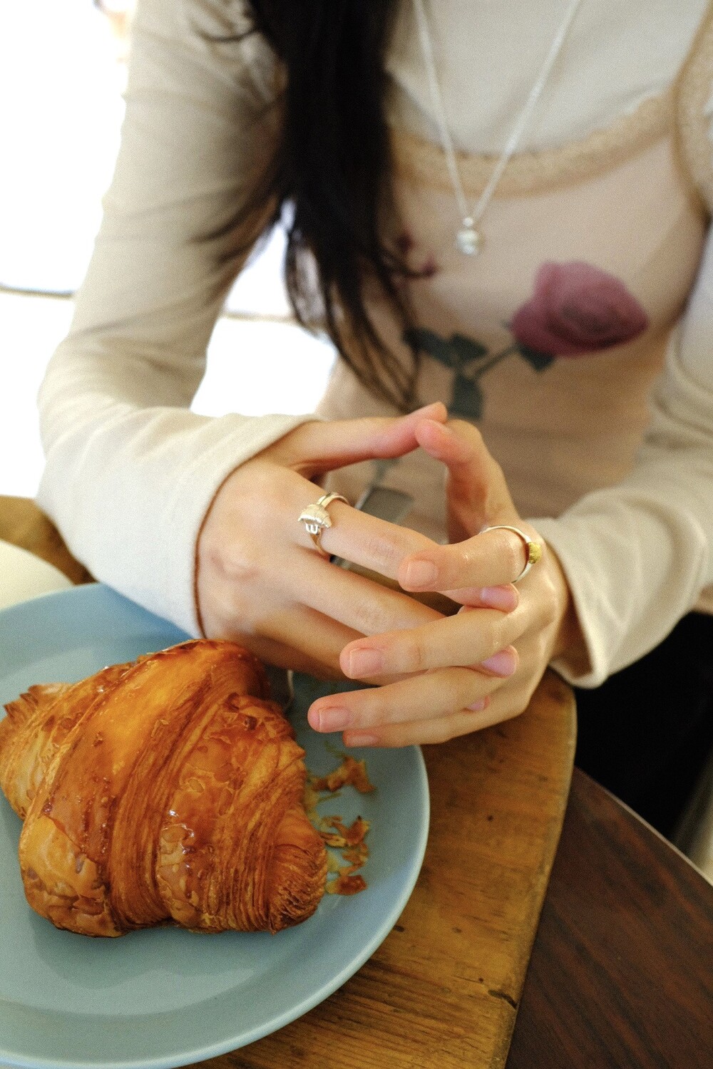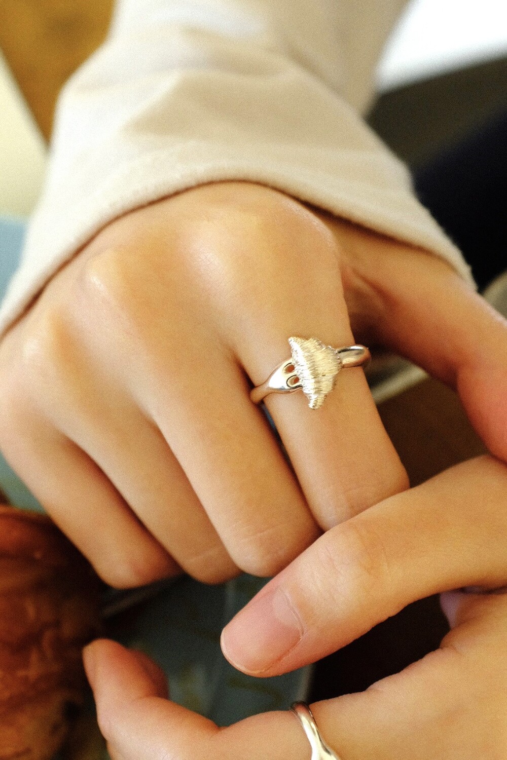 크로와상 빵을 포크로 콕 찍은 모양으로 제작된 반지 입니다.