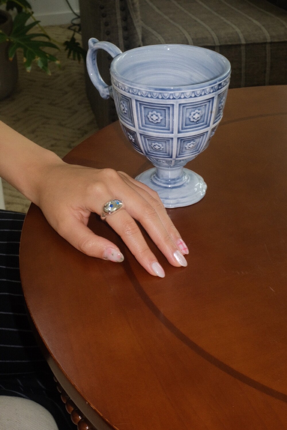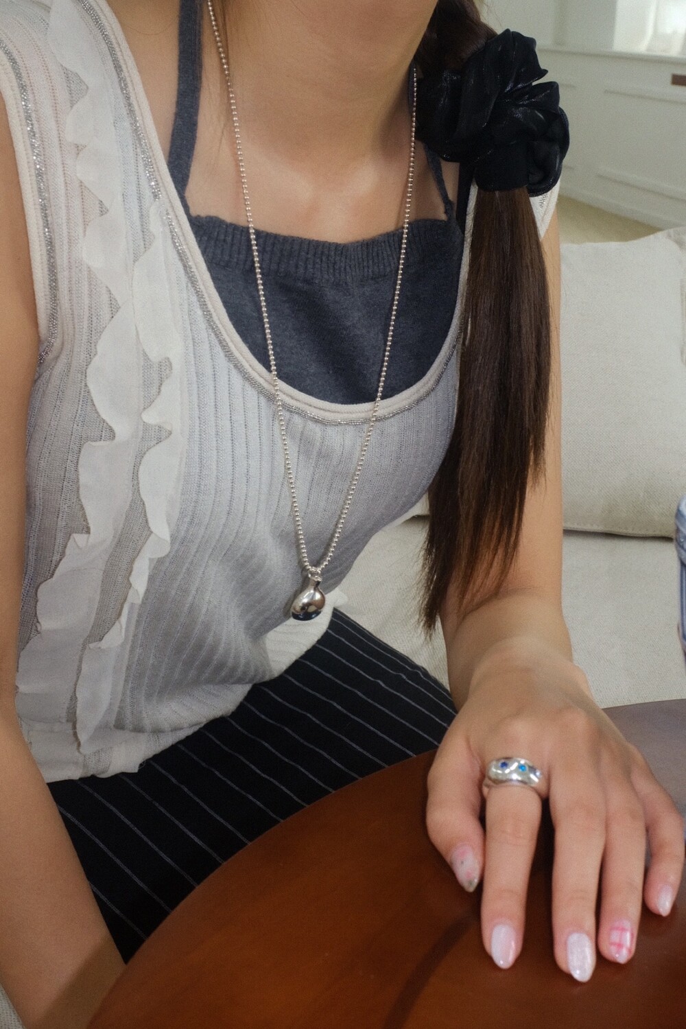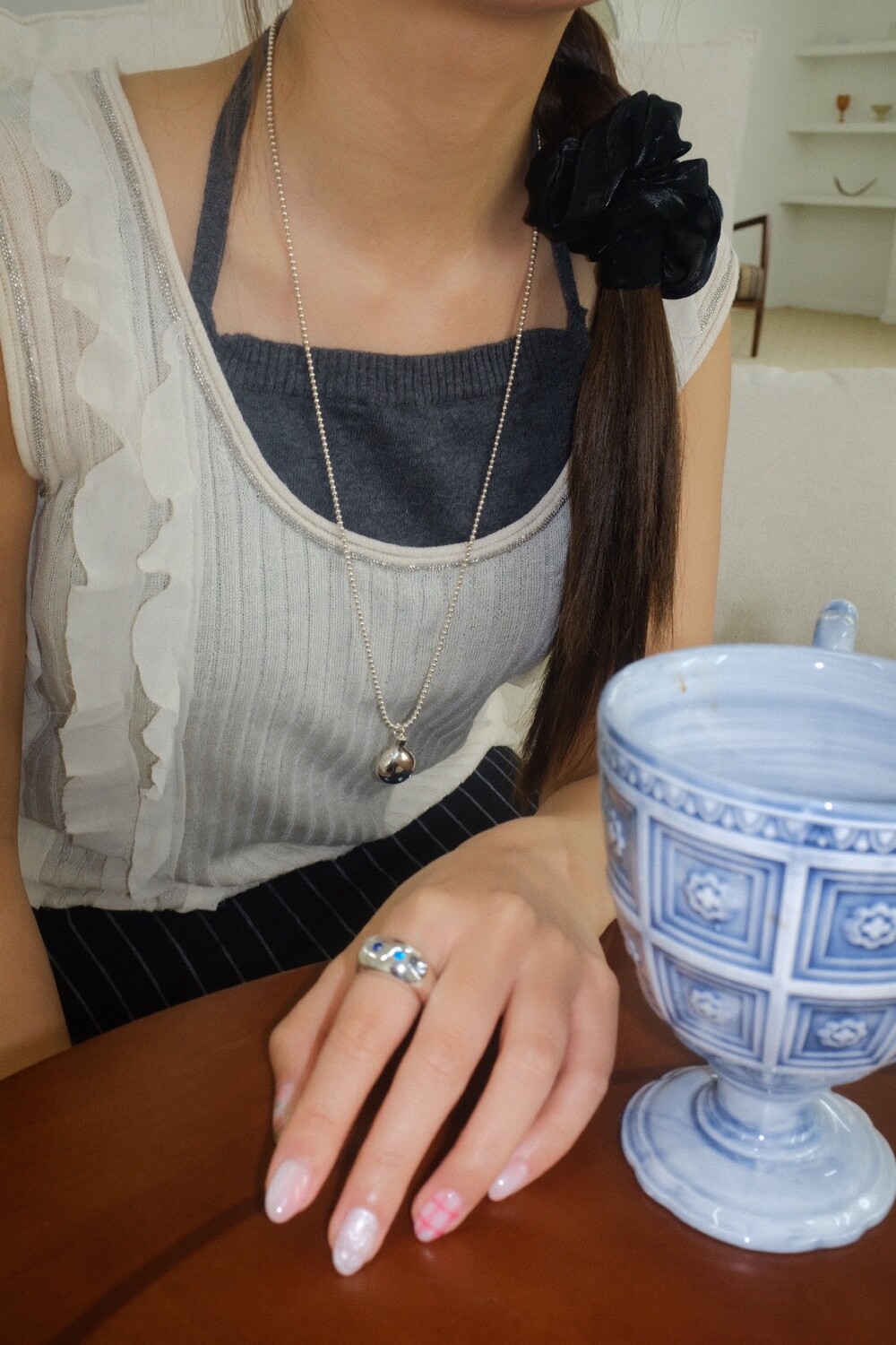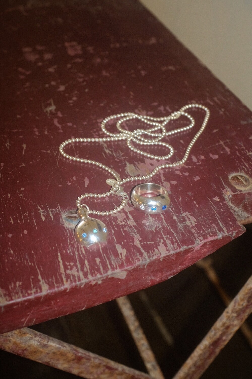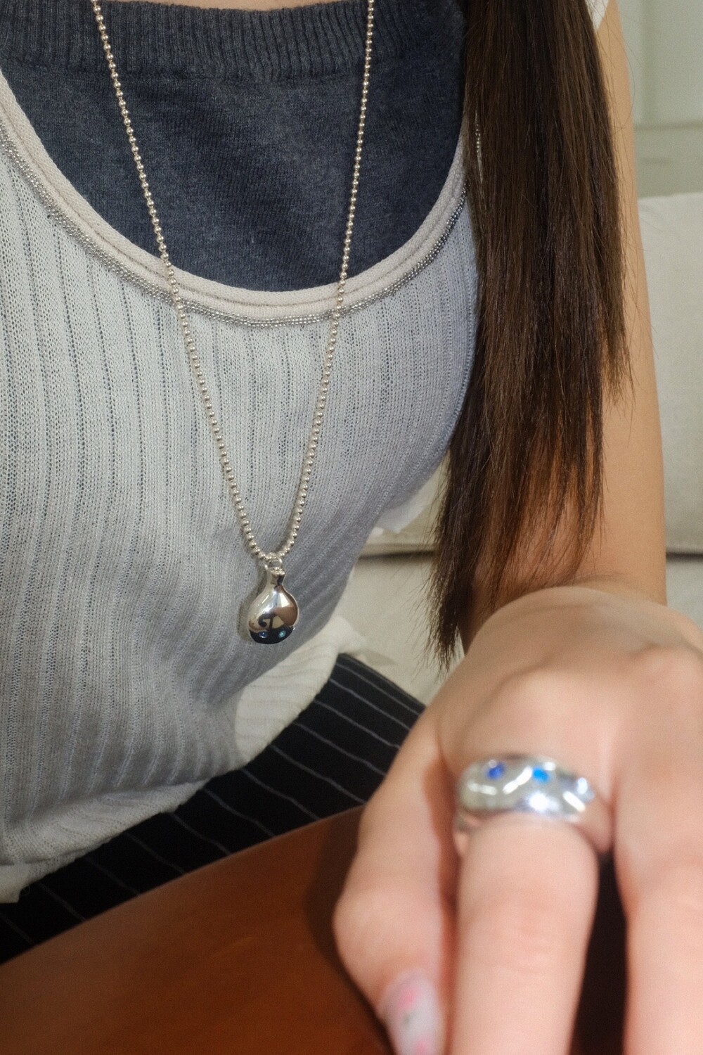 기존의 Volume ring을 볼드 한 버전으로 제작된 제품입니다. 심플한 실루엣이지만 통과된듯한 디테일과 3가지 톤의 블루 색상 큐빅으로 포인트가 추가되었습니다.