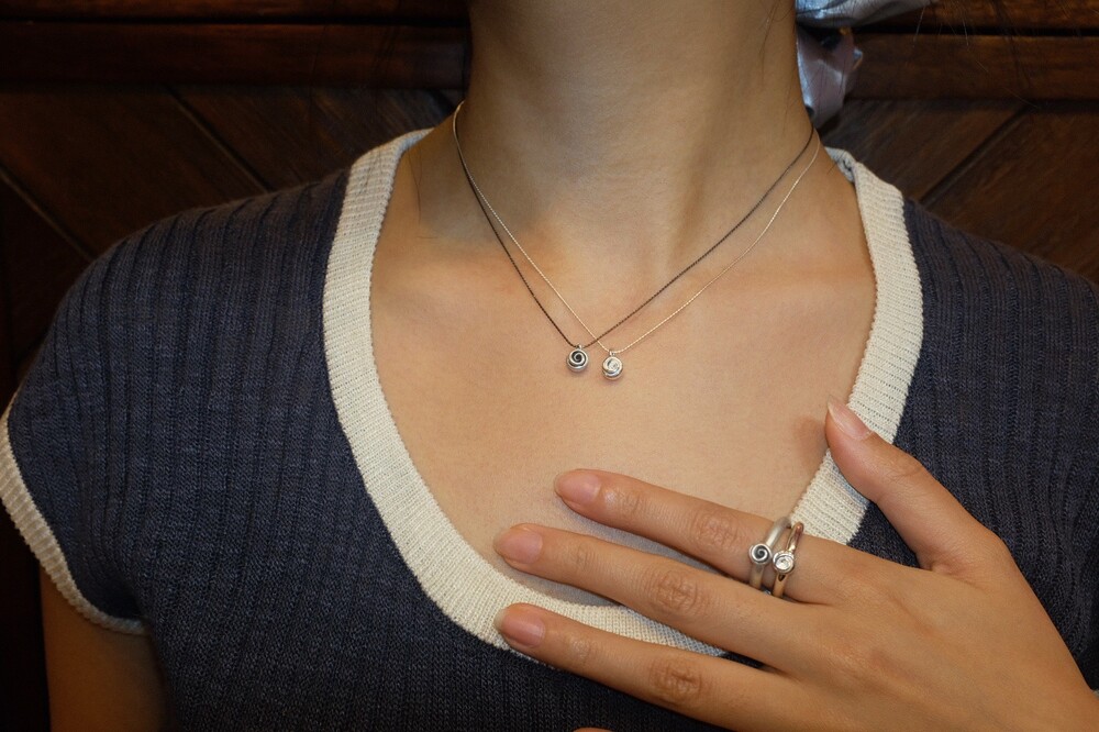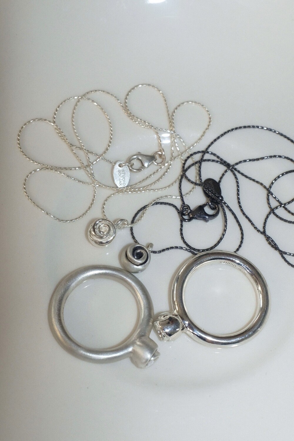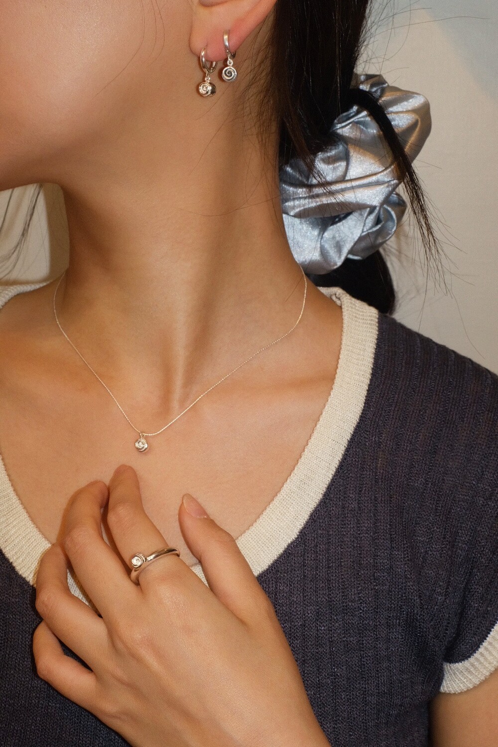 작은 장미를 펜던트로 제작된 목걸이입니다. 너무 화려한 디지인이 아닌 미니멀하게 표현한 제품으로 데일리하게 착용할 수 있습니다.