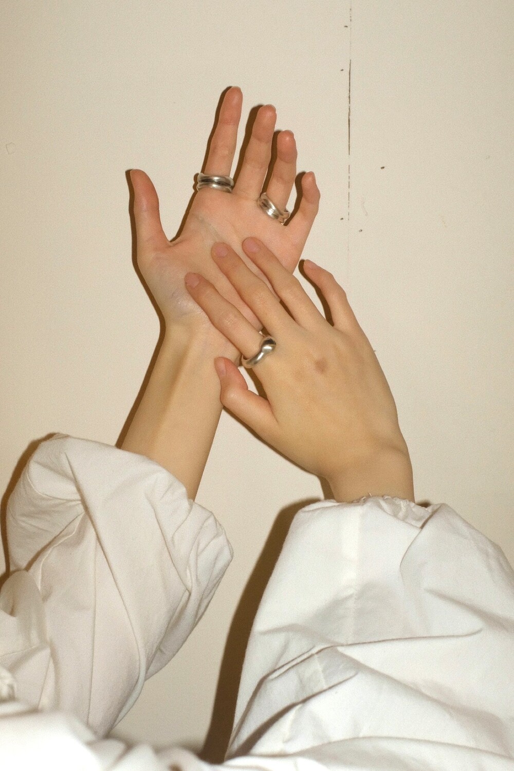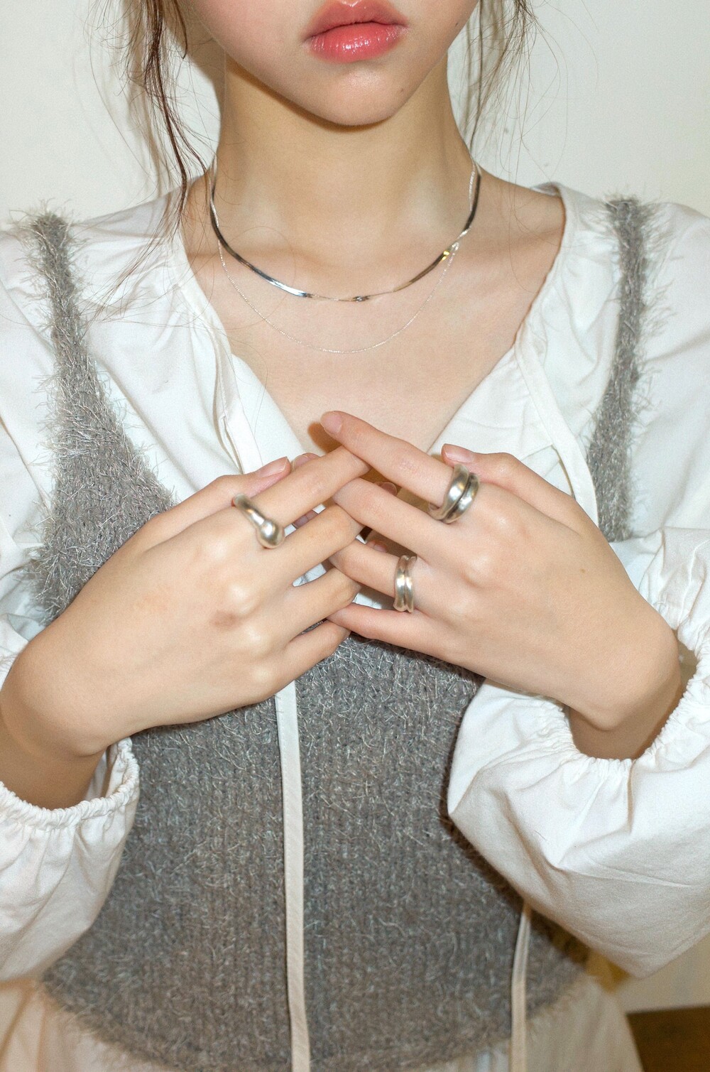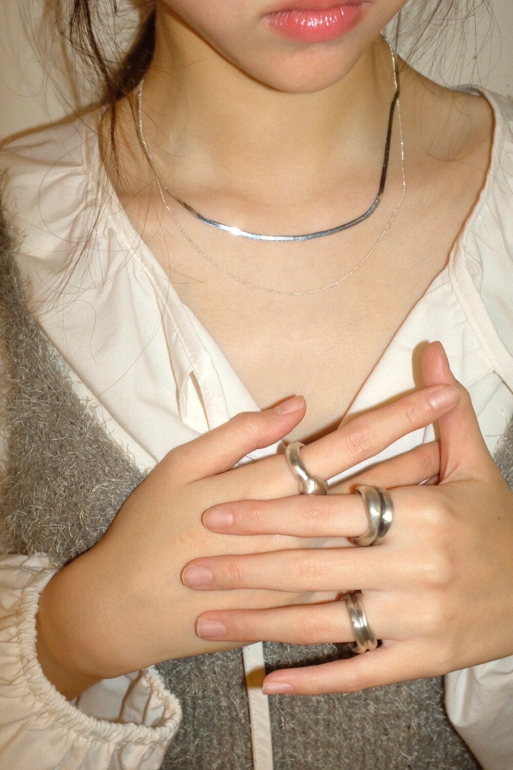 비정형적인 곡선과 굴곡을 살려 제작된 제품입니다. 굵기와 두께 모두 일정하지 않기 때문에 착용하는 방향에 따라 모두 다른 느낌으로 보이는 특징의 제품입니다.