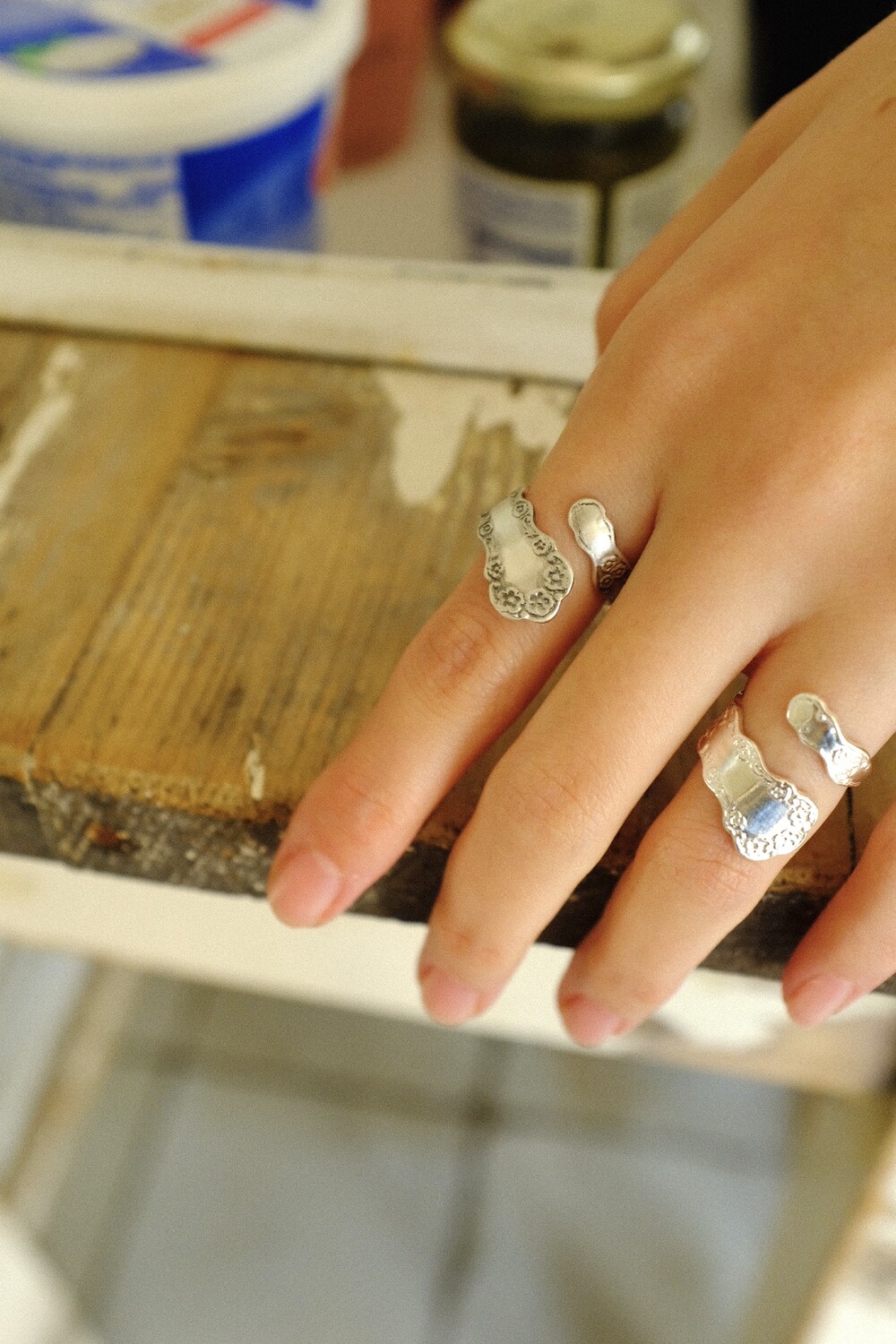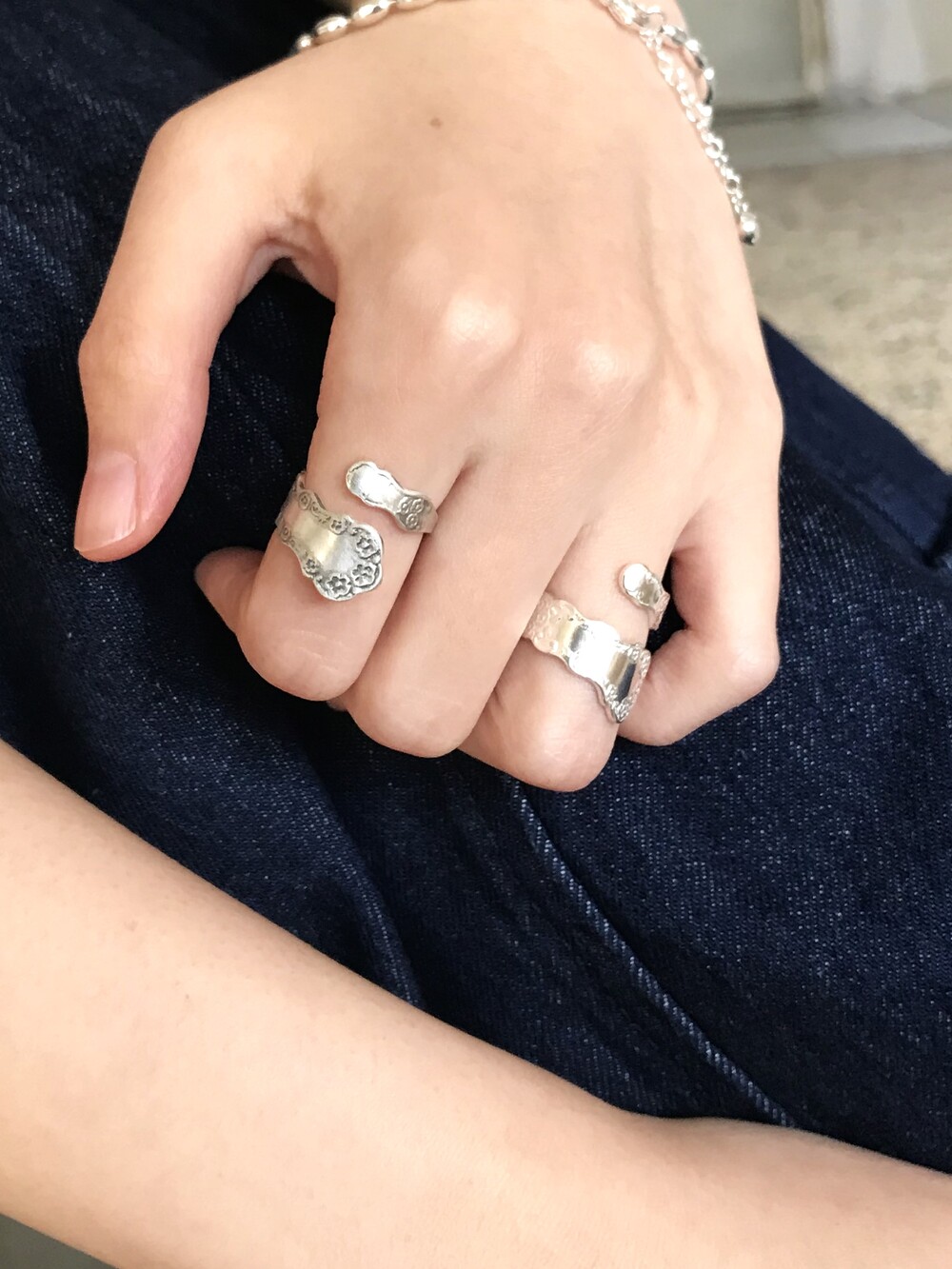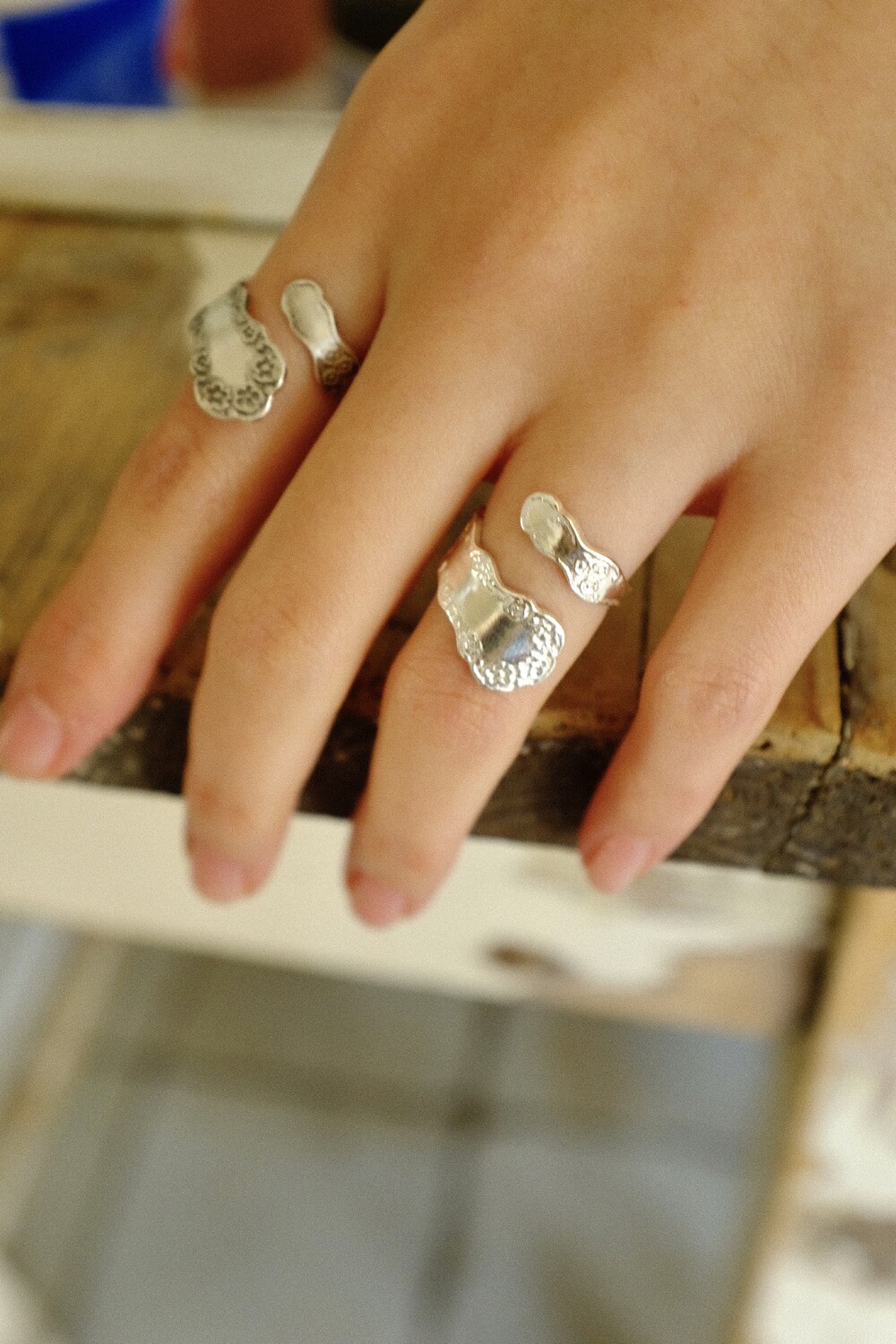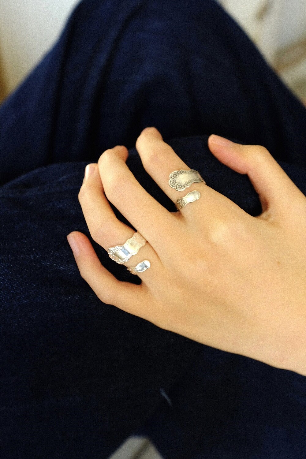 꽃잎의 부드러운 곡선과 형태를 반영하여 손가락을 감싸는 구조로 제작한 반지 입니다.