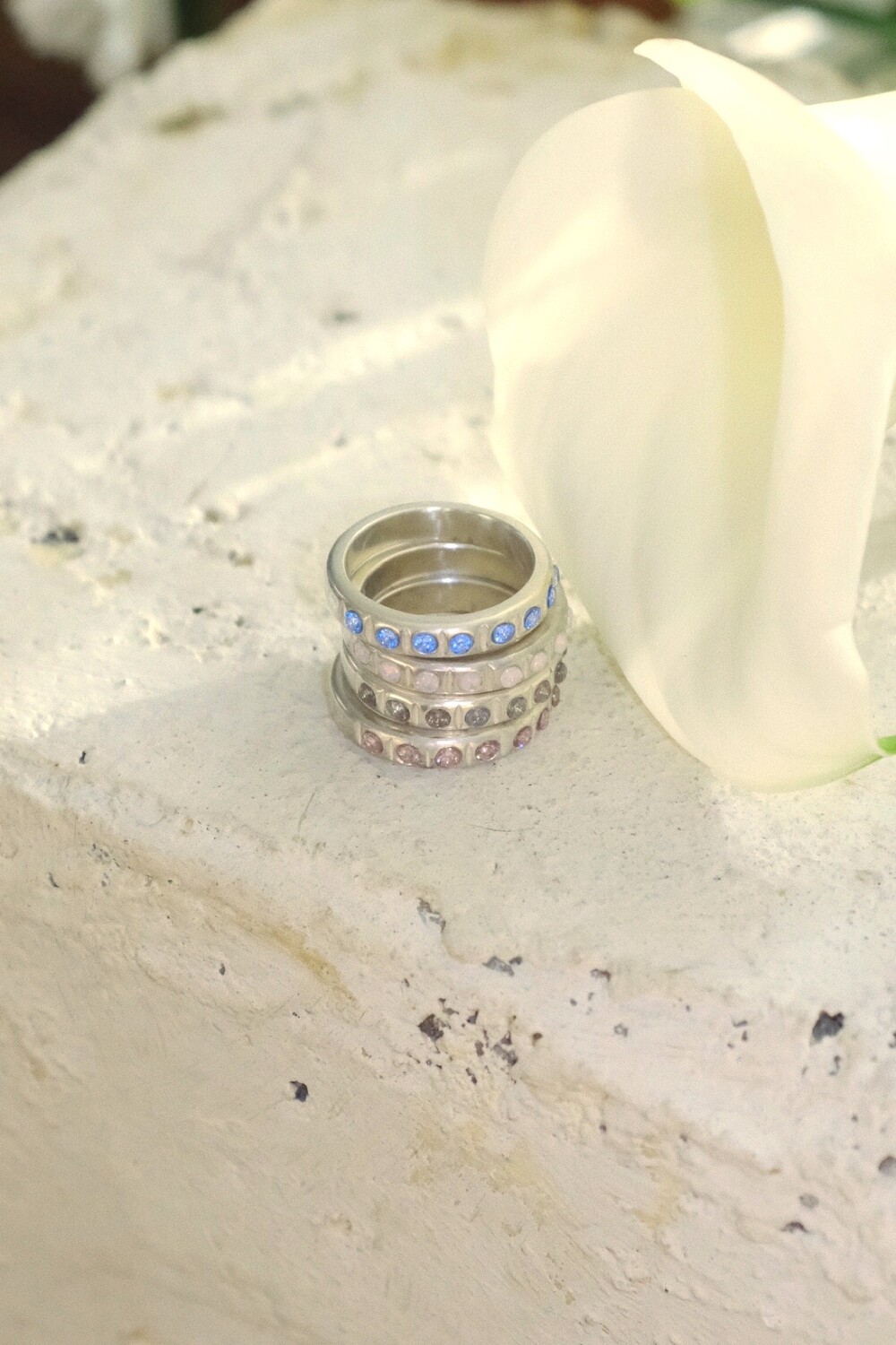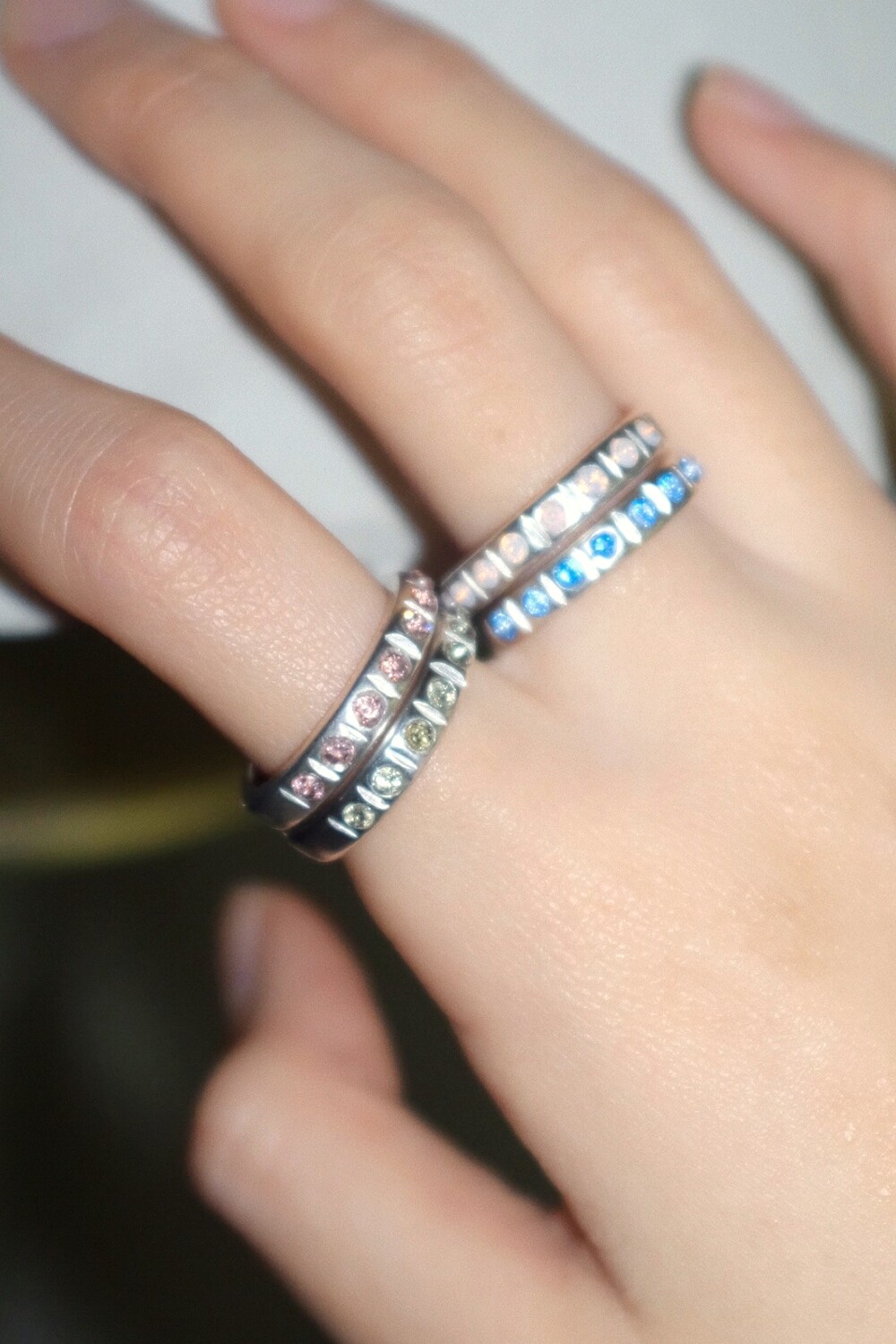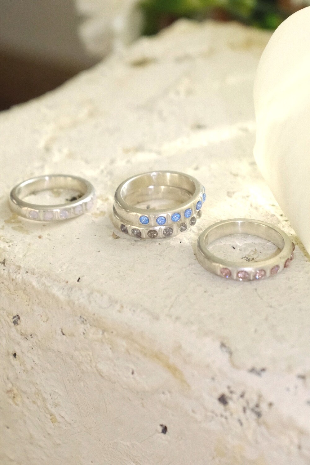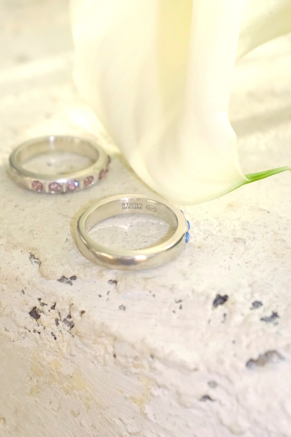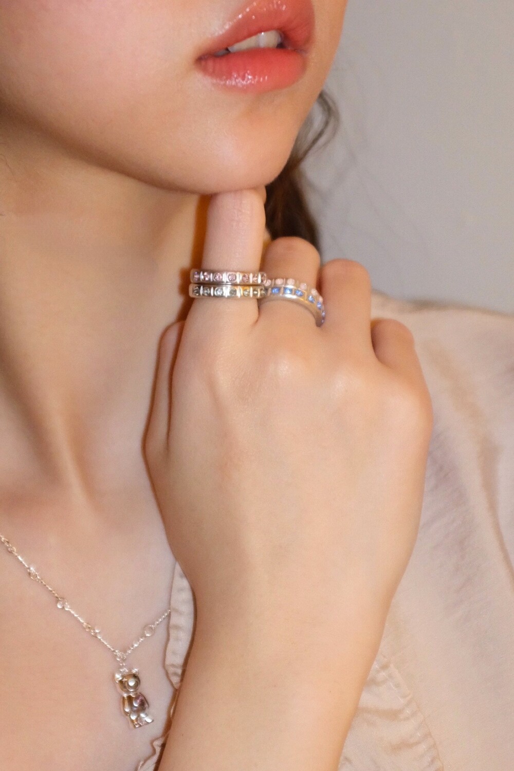 총 네가지 색상의 큐빅중 선택하실 수 있으며, 반지 쉐입은 전체적으로 각을 굴려 부드럽게 제작해 편안하게 착용하실 수 있습니다.
