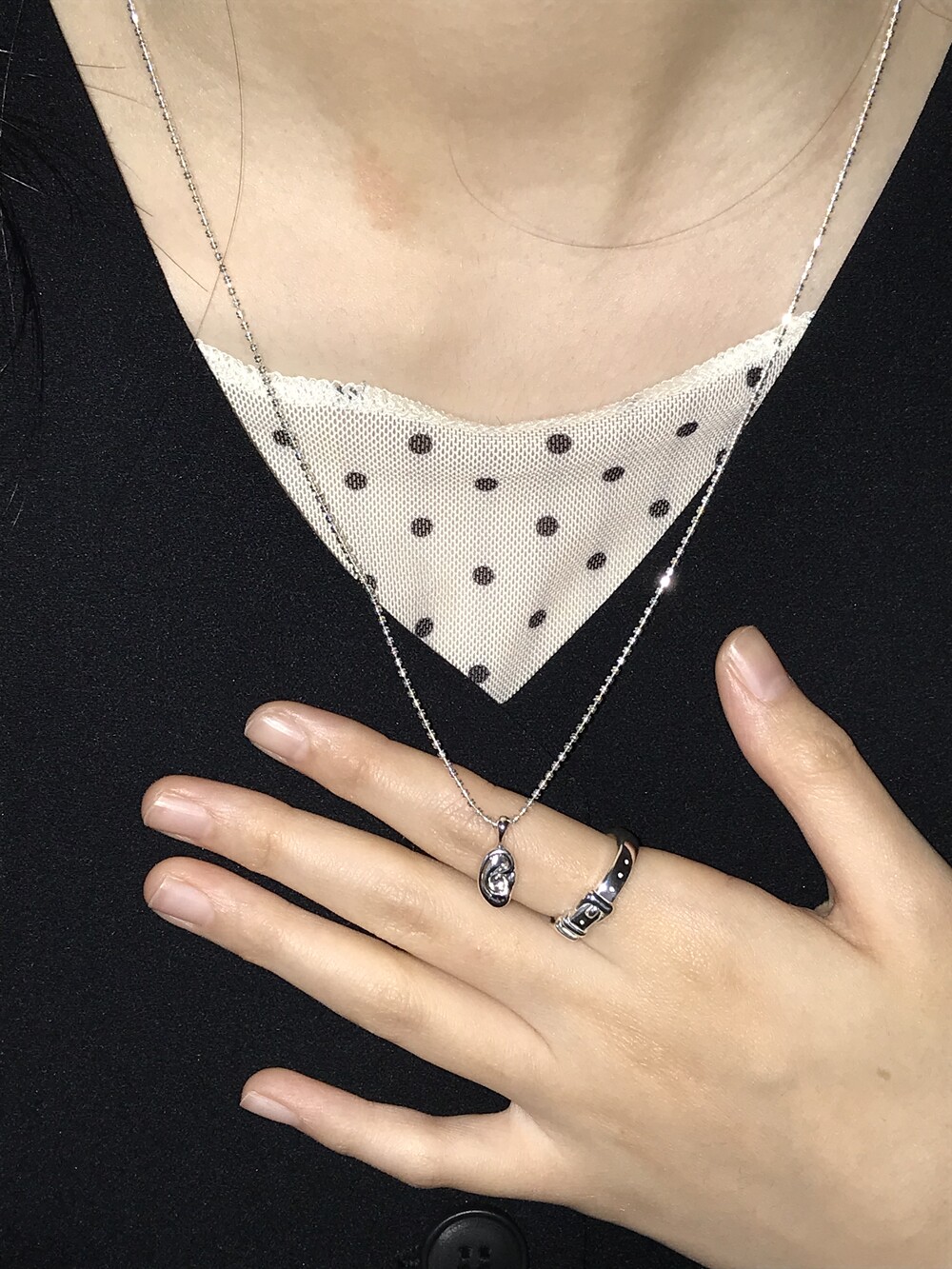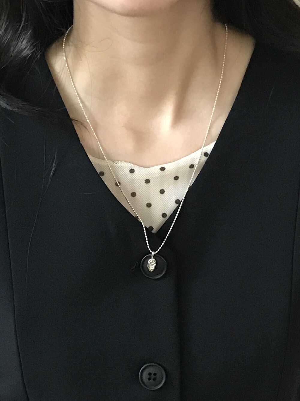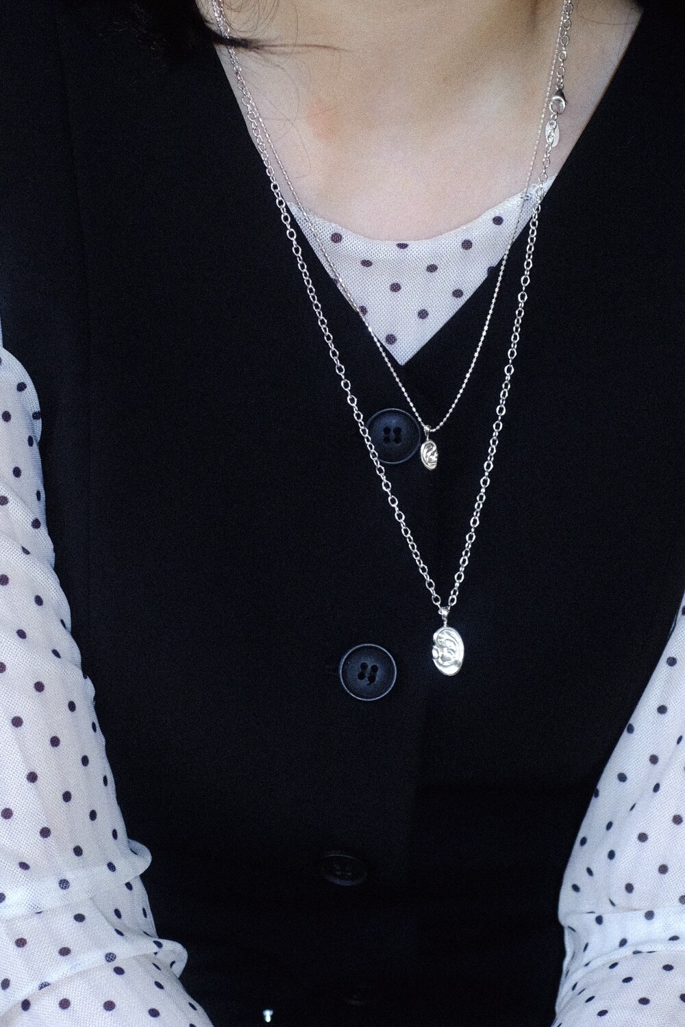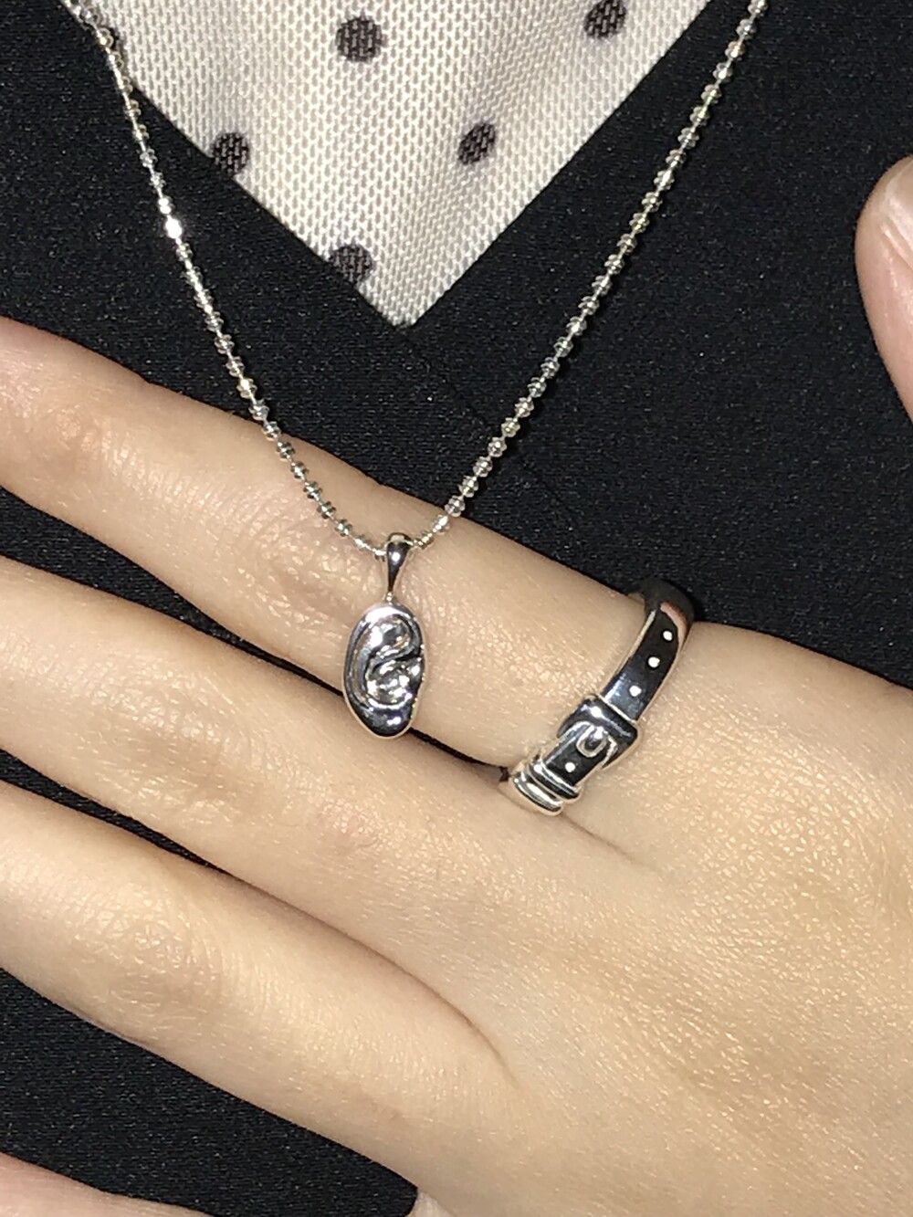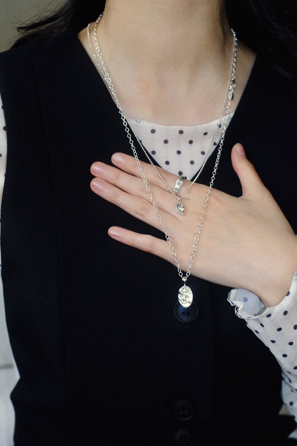 귀 모양을 형상화한 펜던트 디자인의 목걸이 입니다. 납작한 두개의 볼이 합쳐진 듯한 특별한 모양의 이태리 체인과 함께 데일리로 착용하기 좋은 사이즈의 제품입니다.