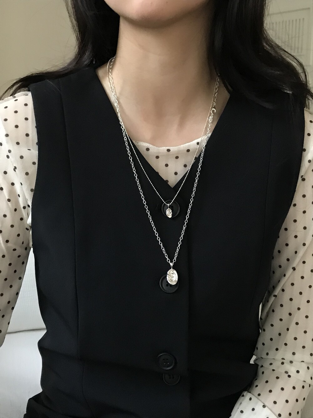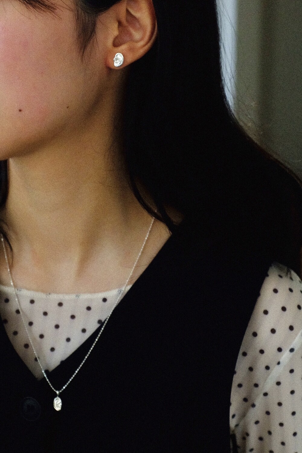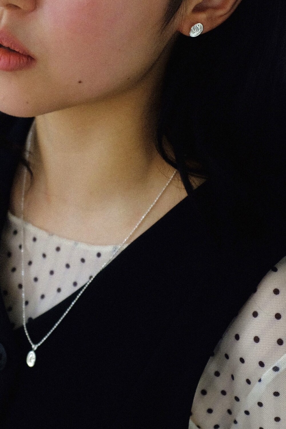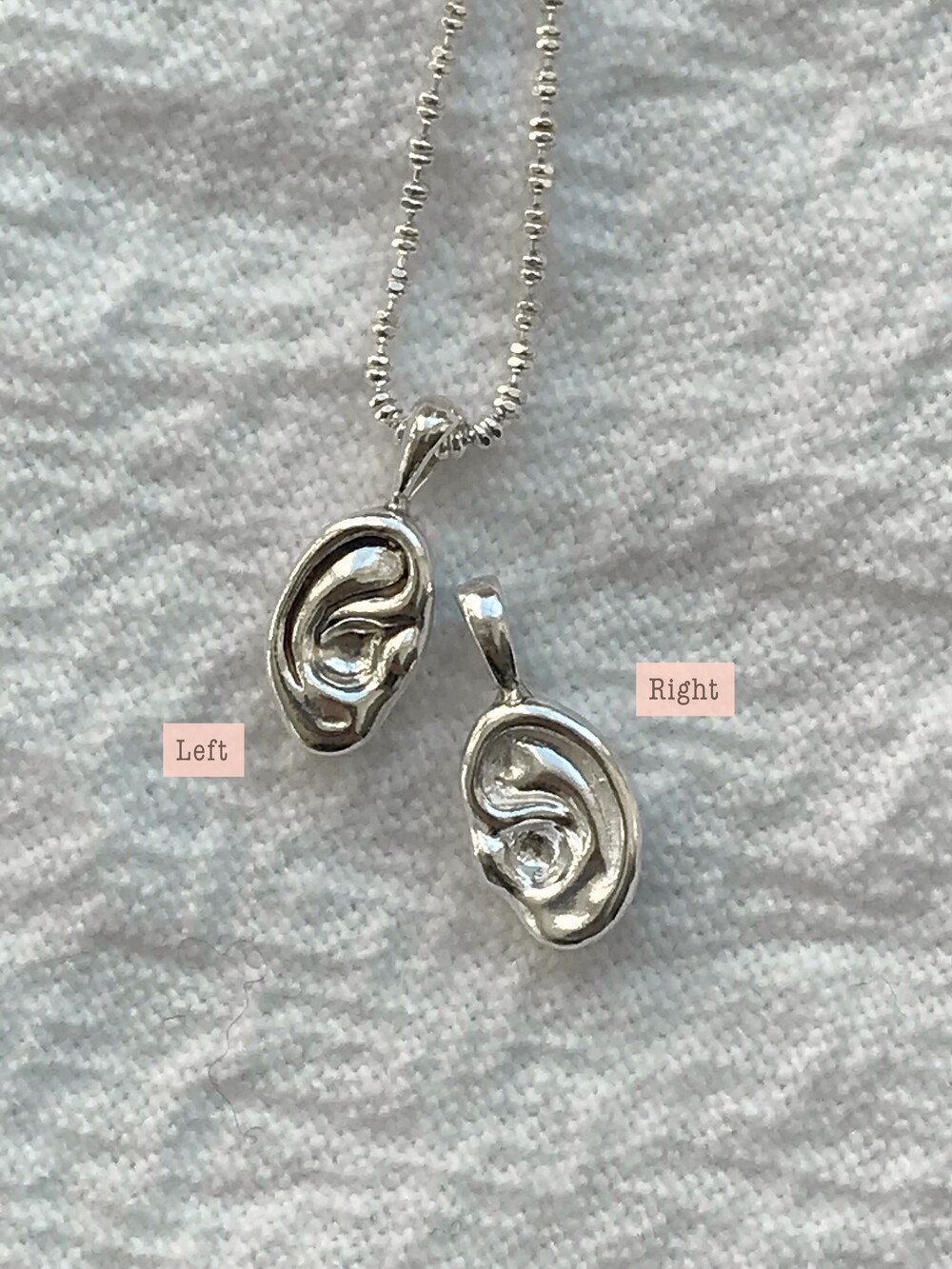귀 모양을 형상화한 펜던트 디자인의 목걸이 입니다. 납작한 두개의 볼이 합쳐진 듯한 특별한 모양의 이태리 체인과 함께 데일리로 착용하기 좋은 사이즈의 제품입니다.