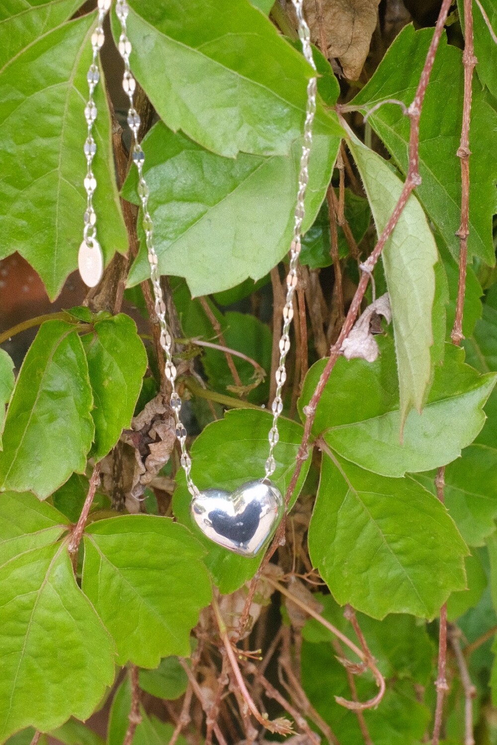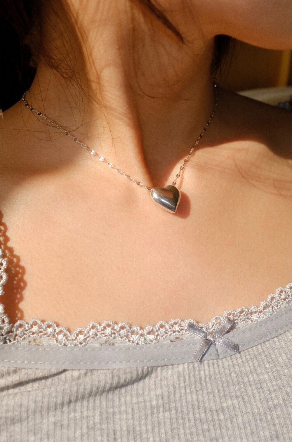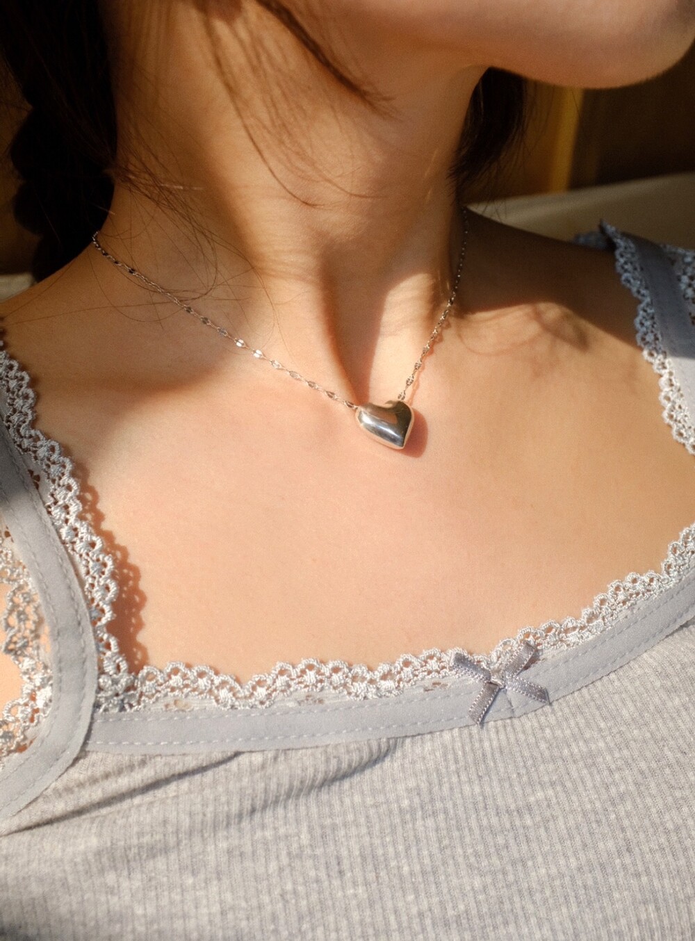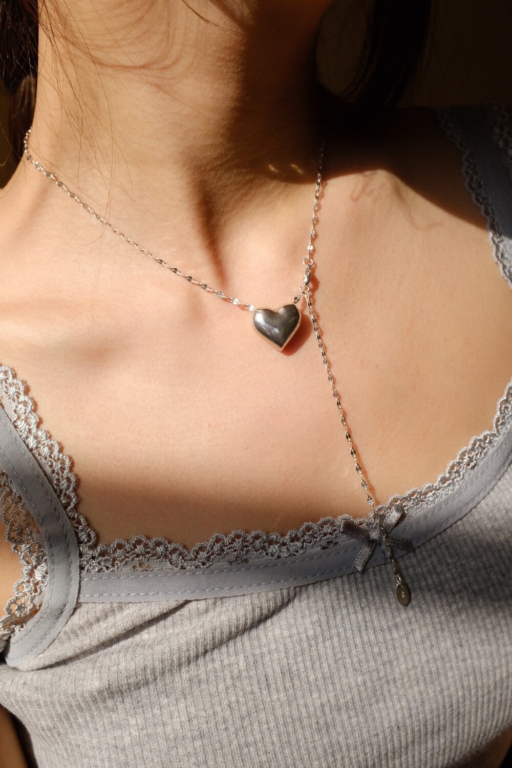 통통한 하트 펜던트와 여리여리한 체인의 조합으로 특별한 무드의 제품입니다.