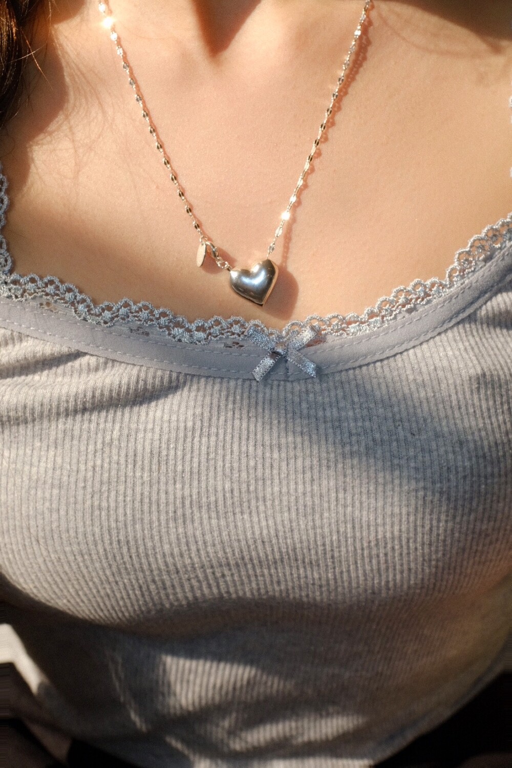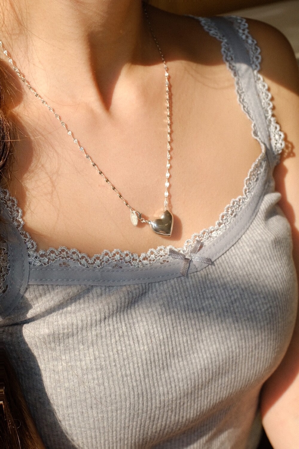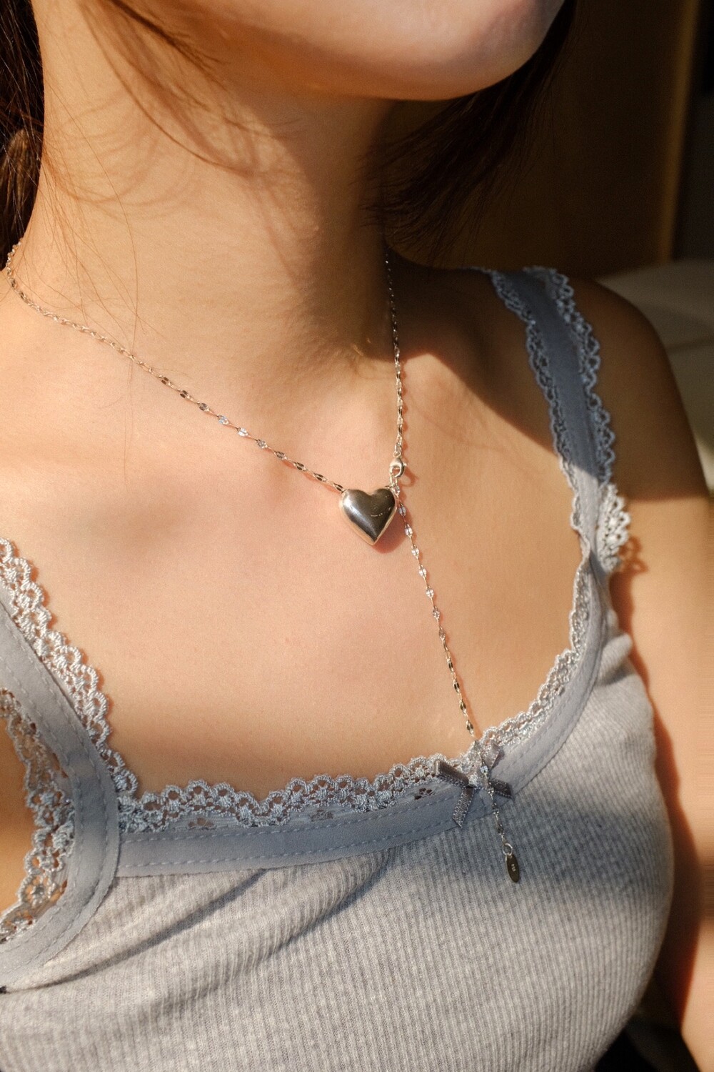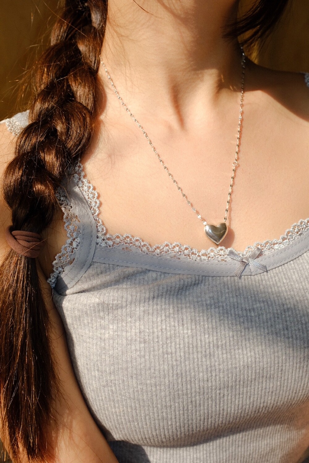통통한 하트 펜던트와 여리여리한 체인의 조합으로 특별한 무드의 제품입니다.