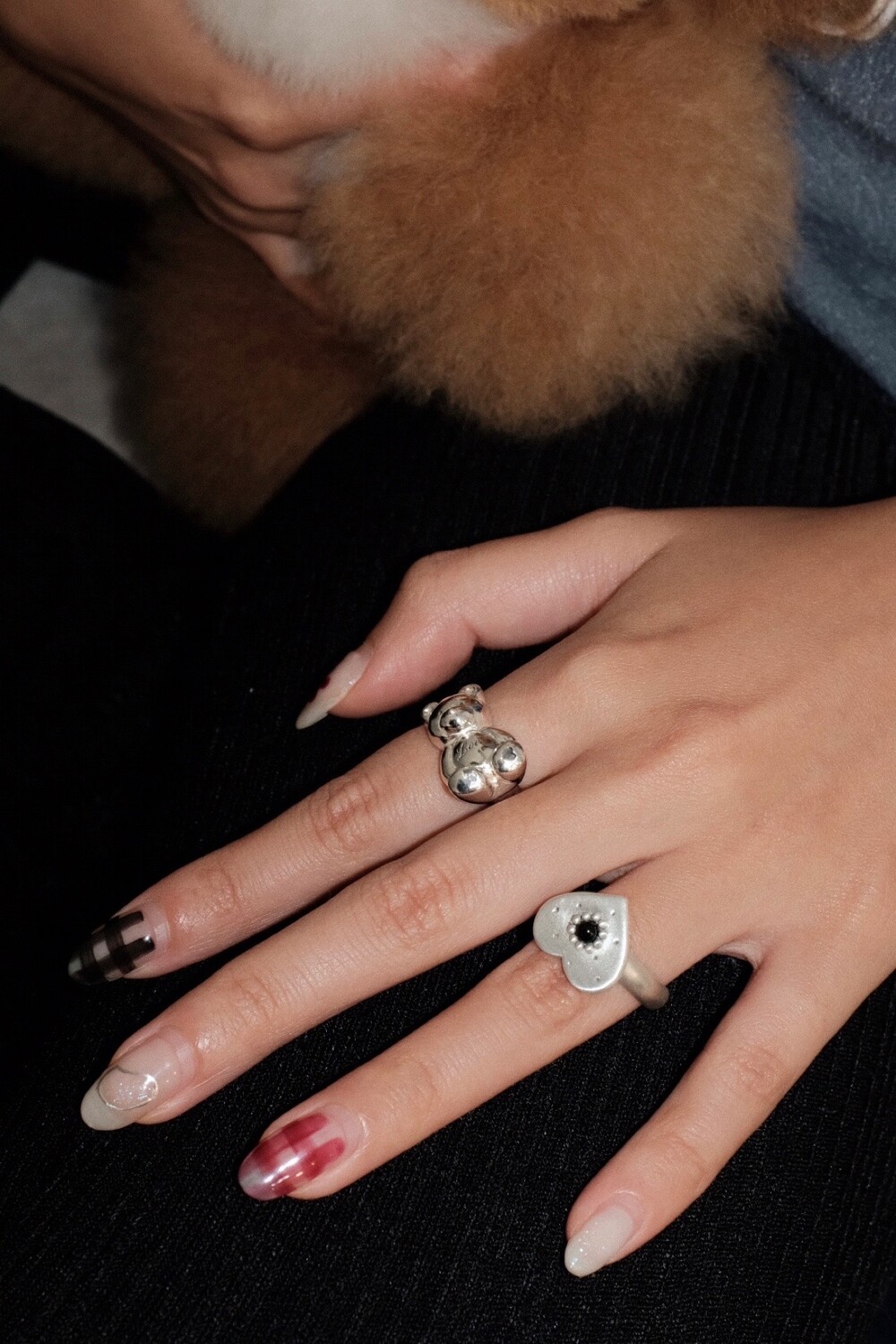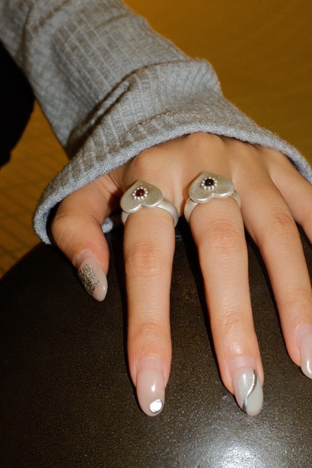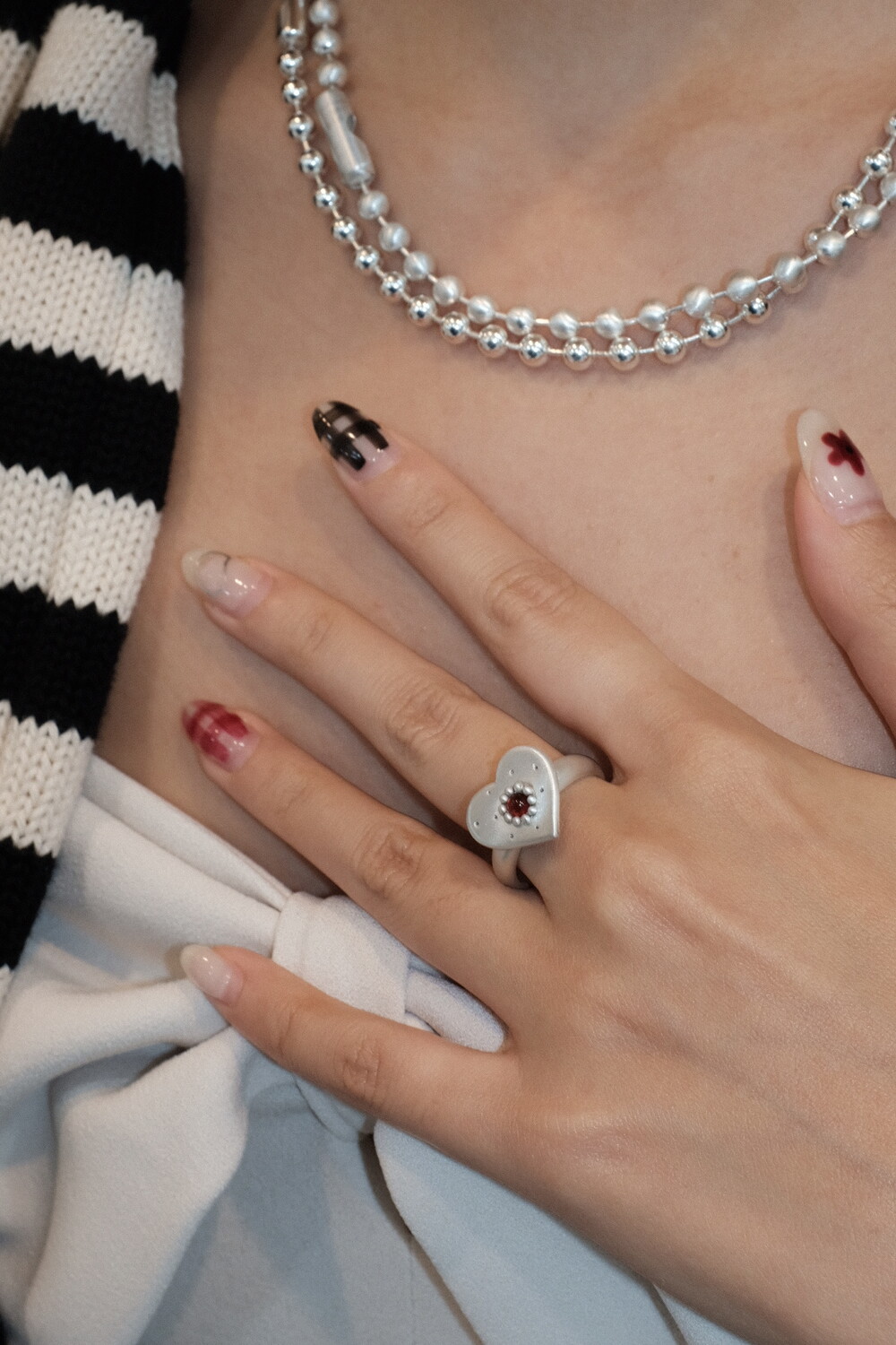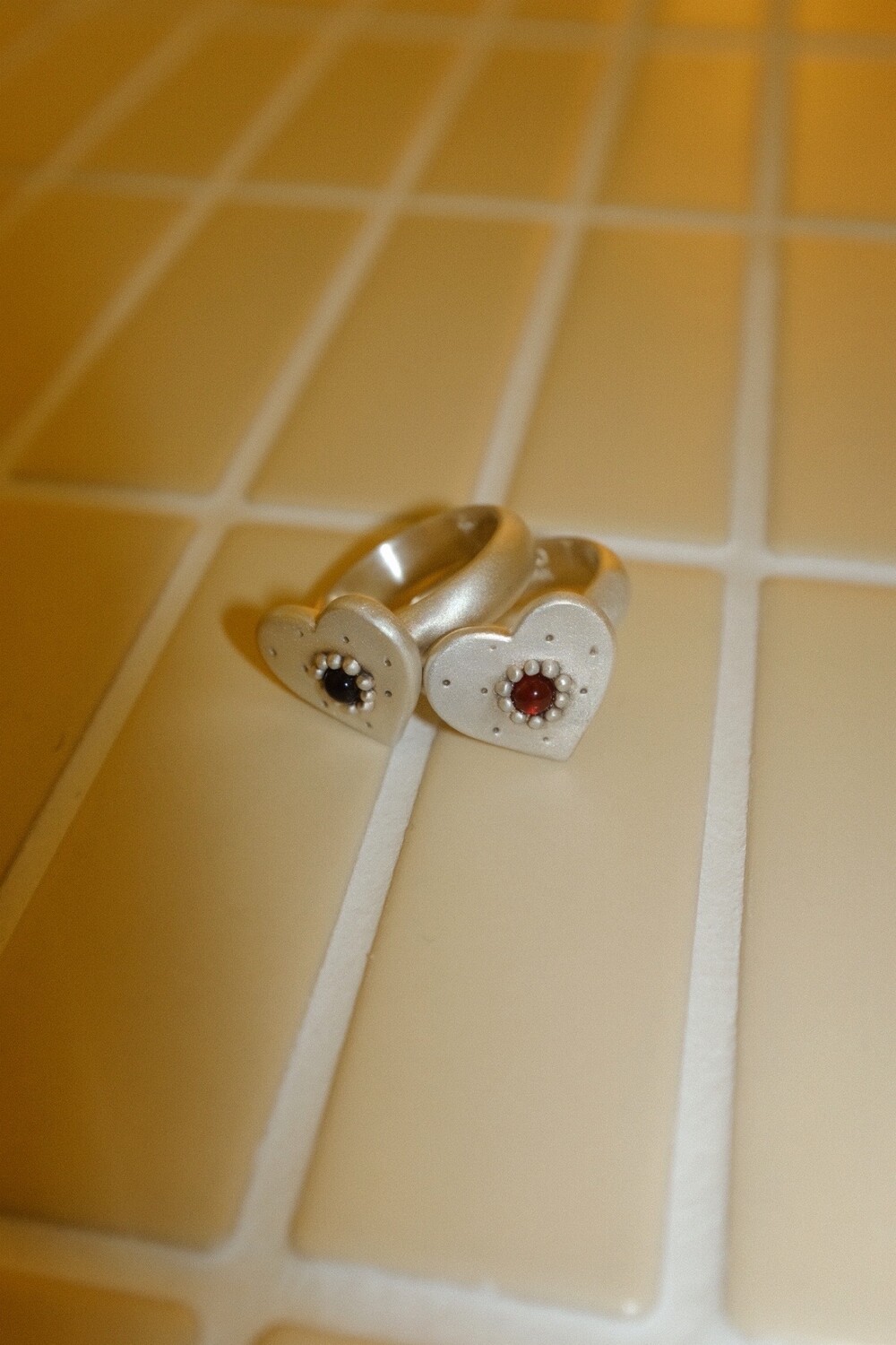 하트 펜던트에 천연 오닉스와 카넬리언이 세팅 된 제품입니다.