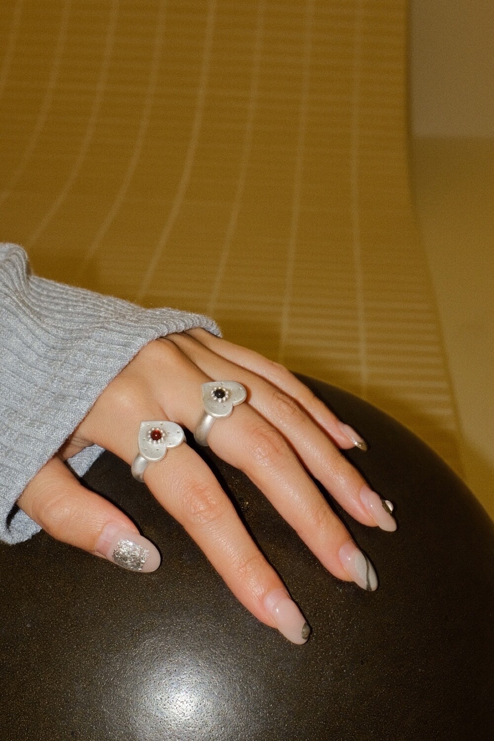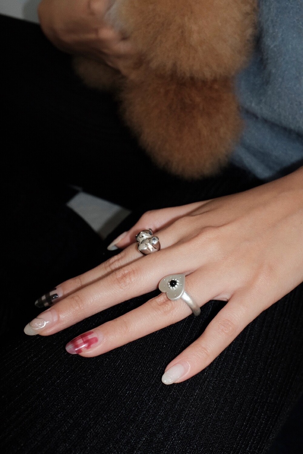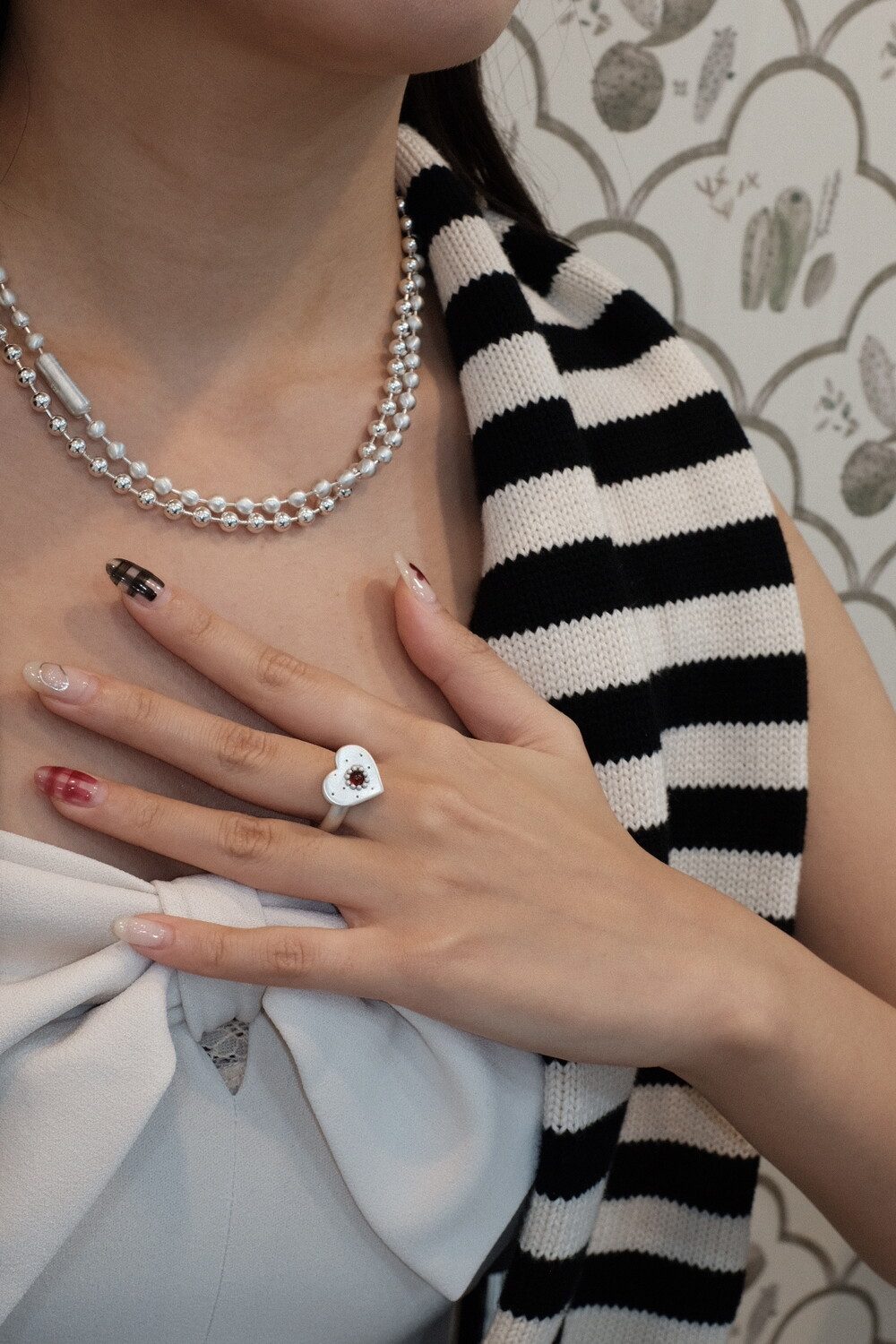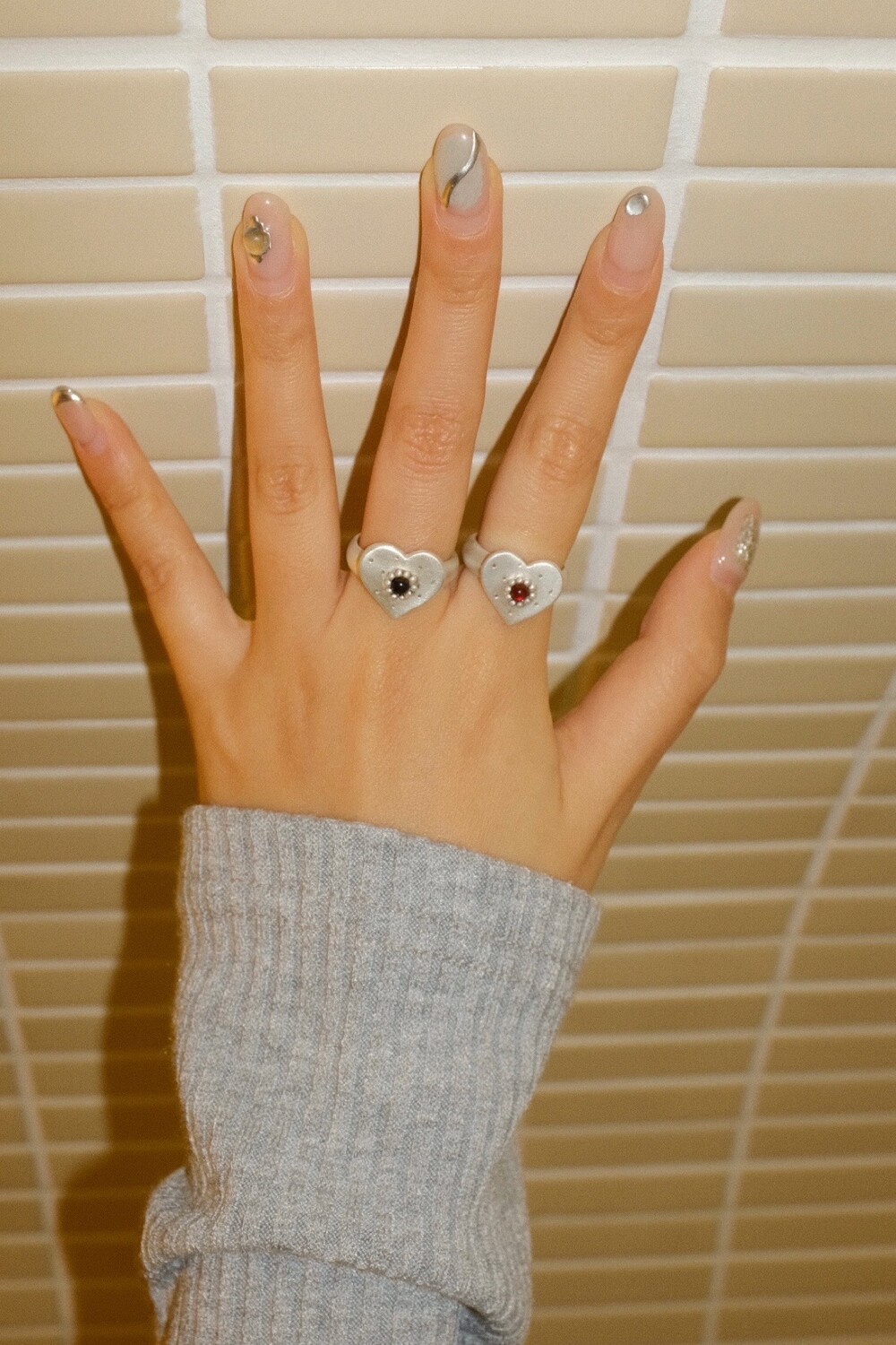 하트 펜던트에 천연 오닉스와 카넬리언이 세팅 된 제품입니다.