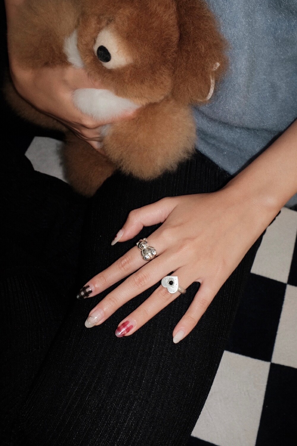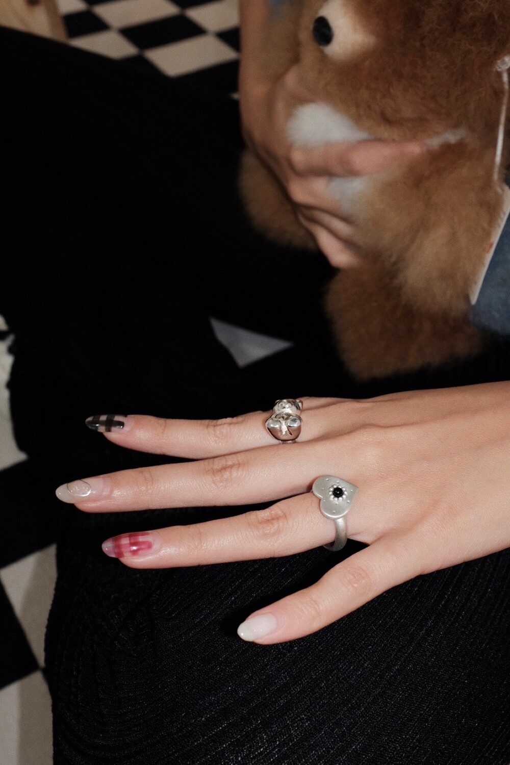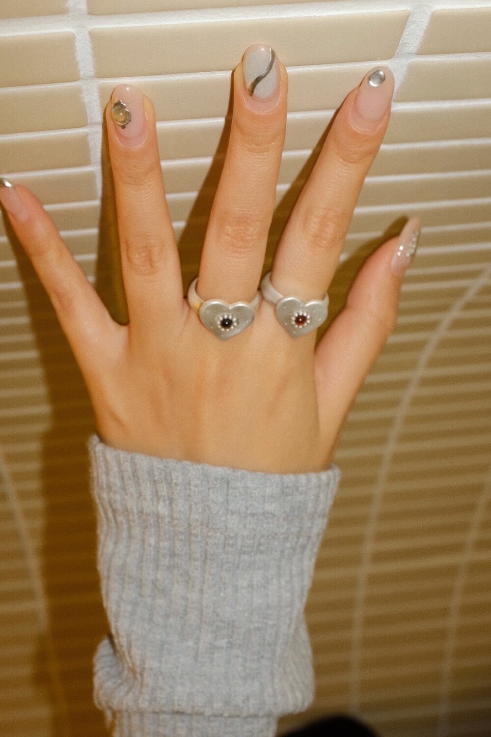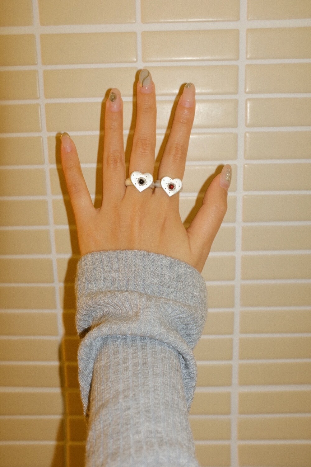 하트 펜던트에 천연 오닉스와 카넬리언이 세팅 된 제품입니다.