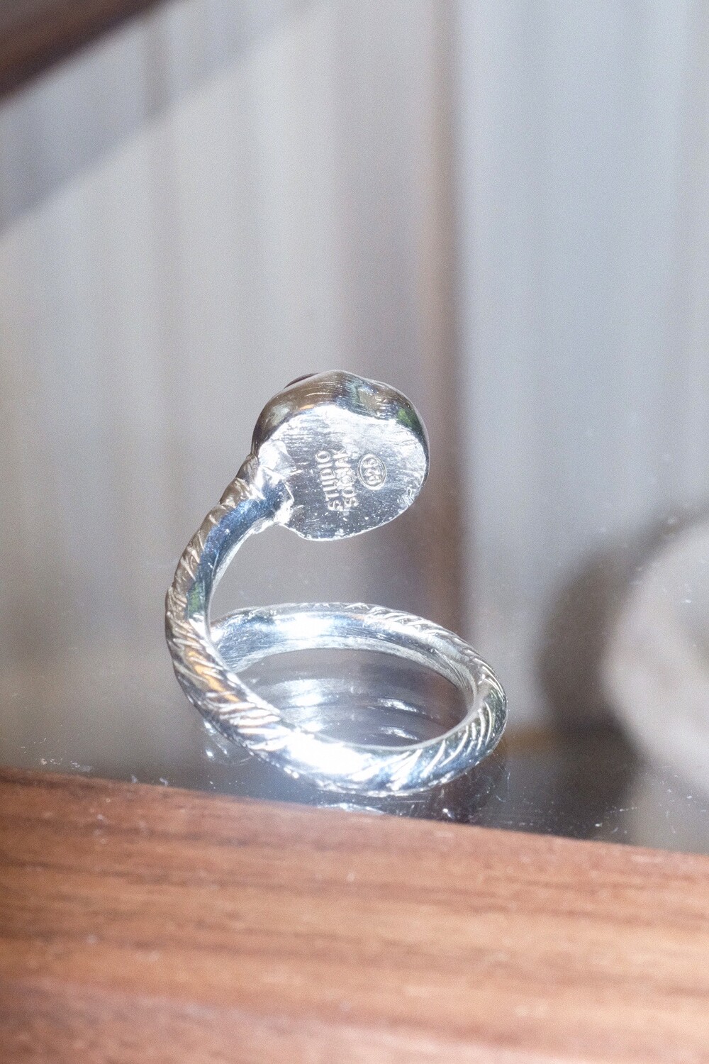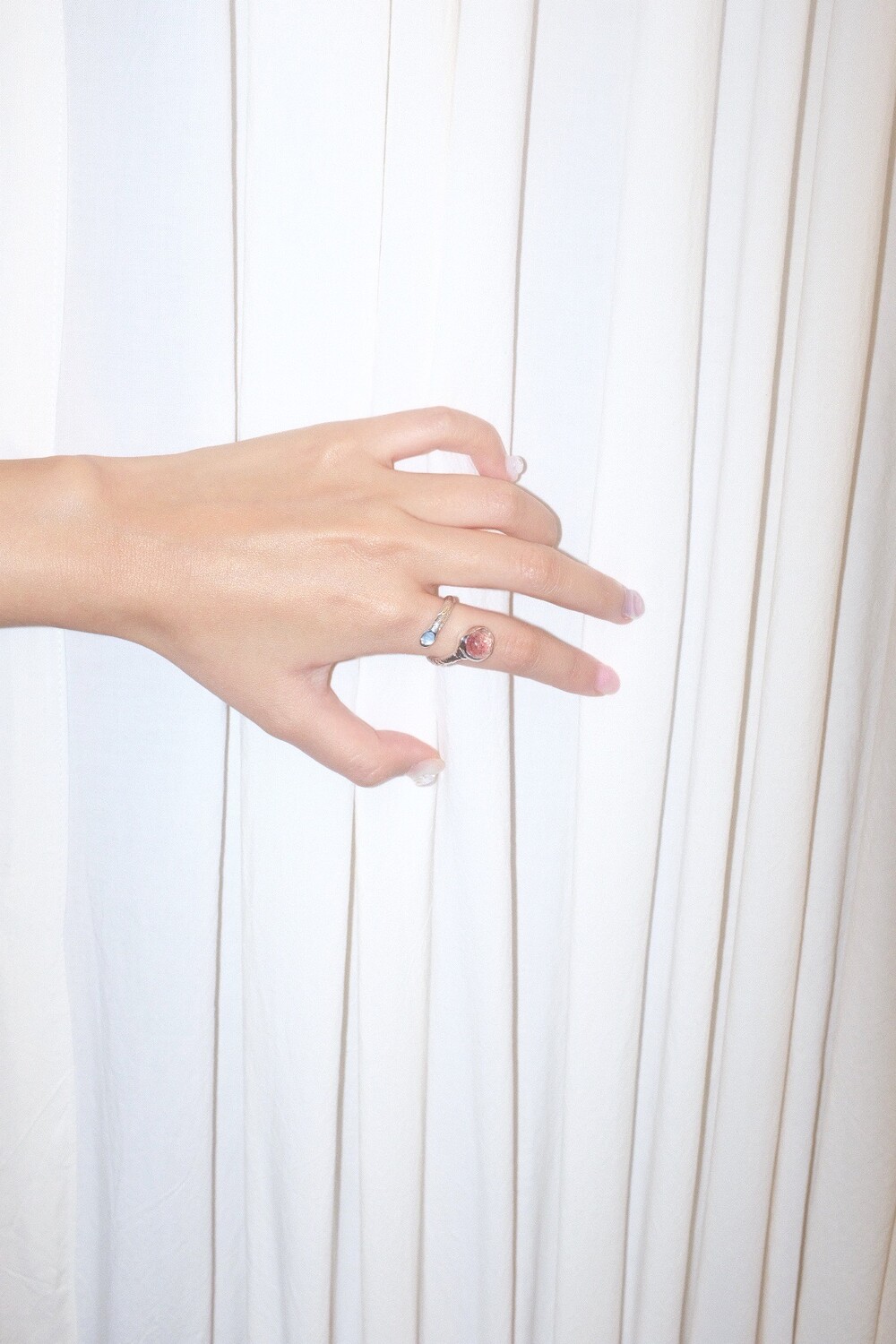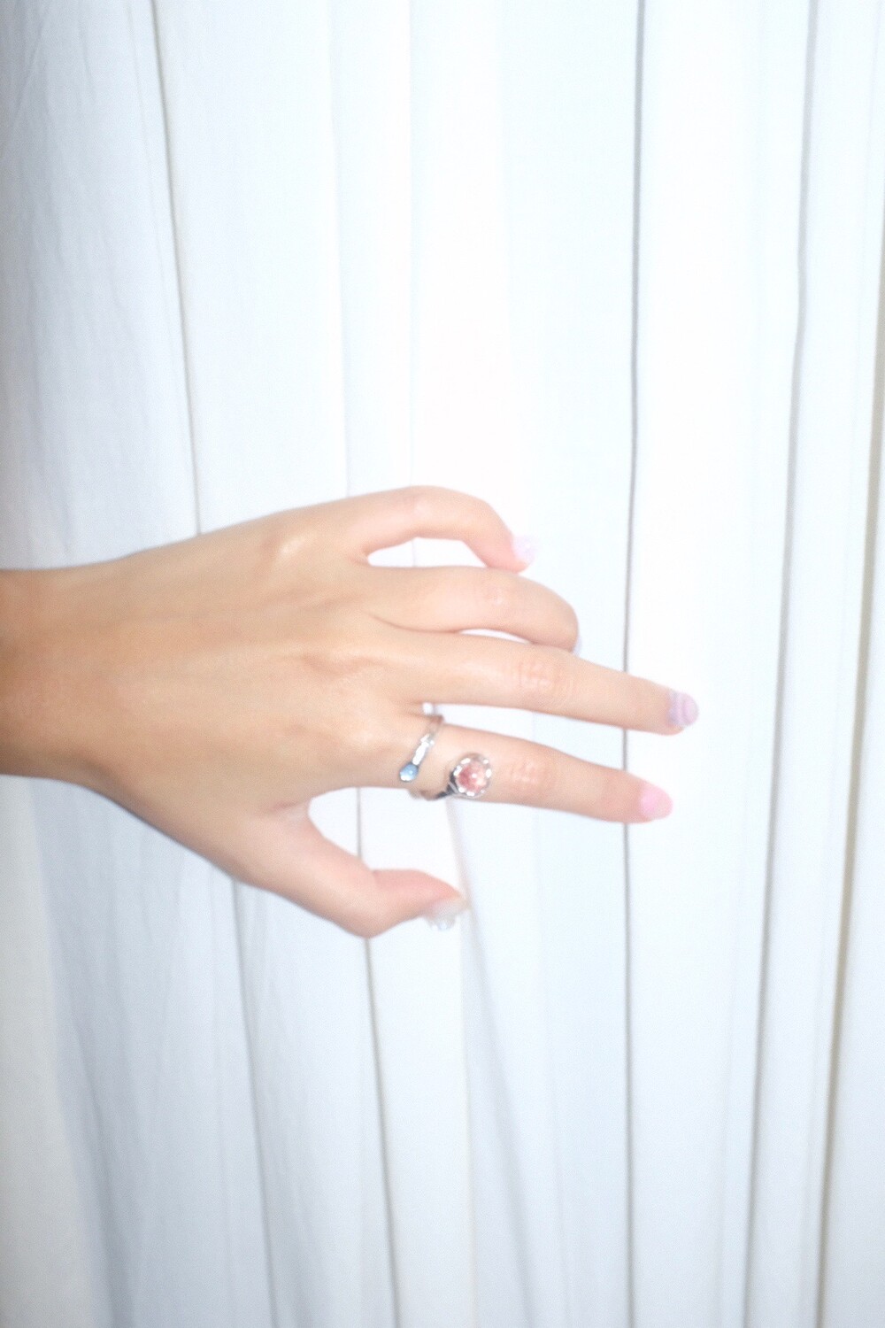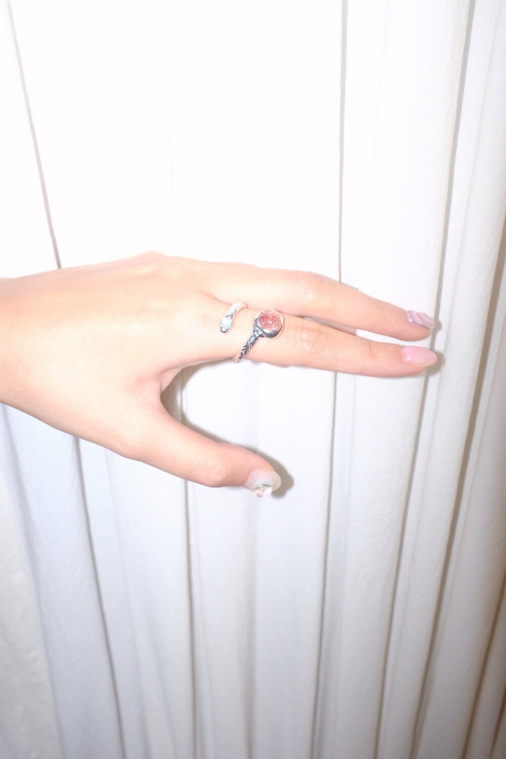 네추럴 하트 스트로베리쿼츠와 원형 블루 칼세도니가 세팅 된 오픈 링 입니다.