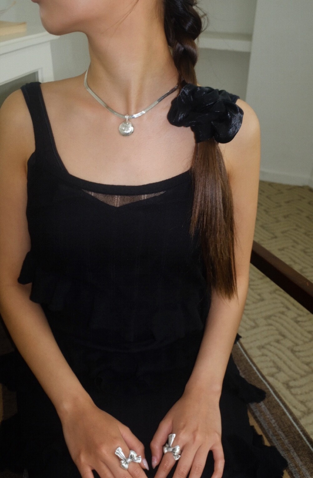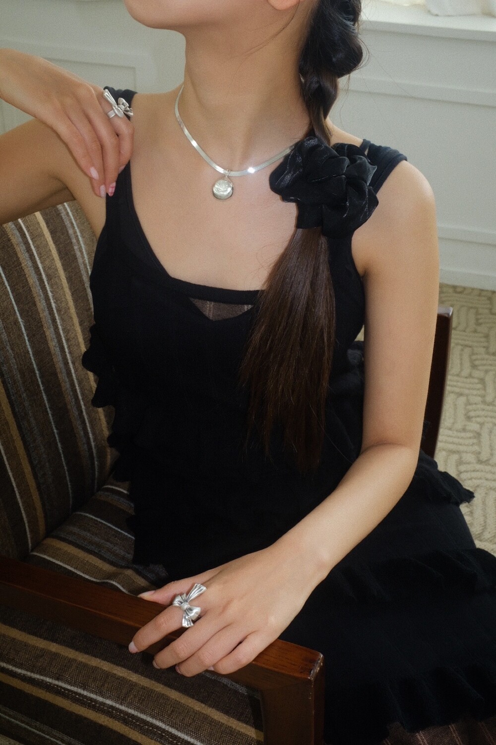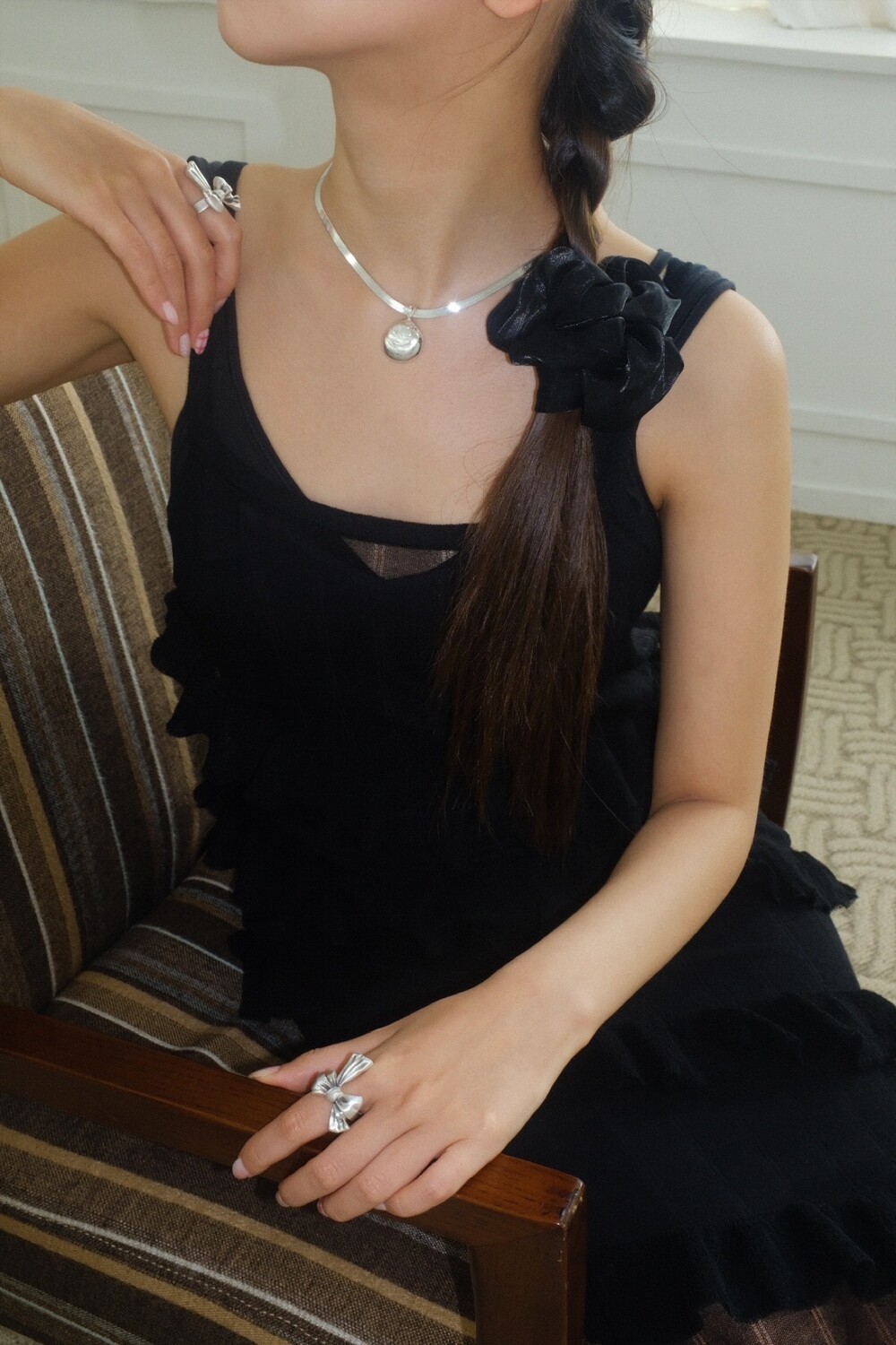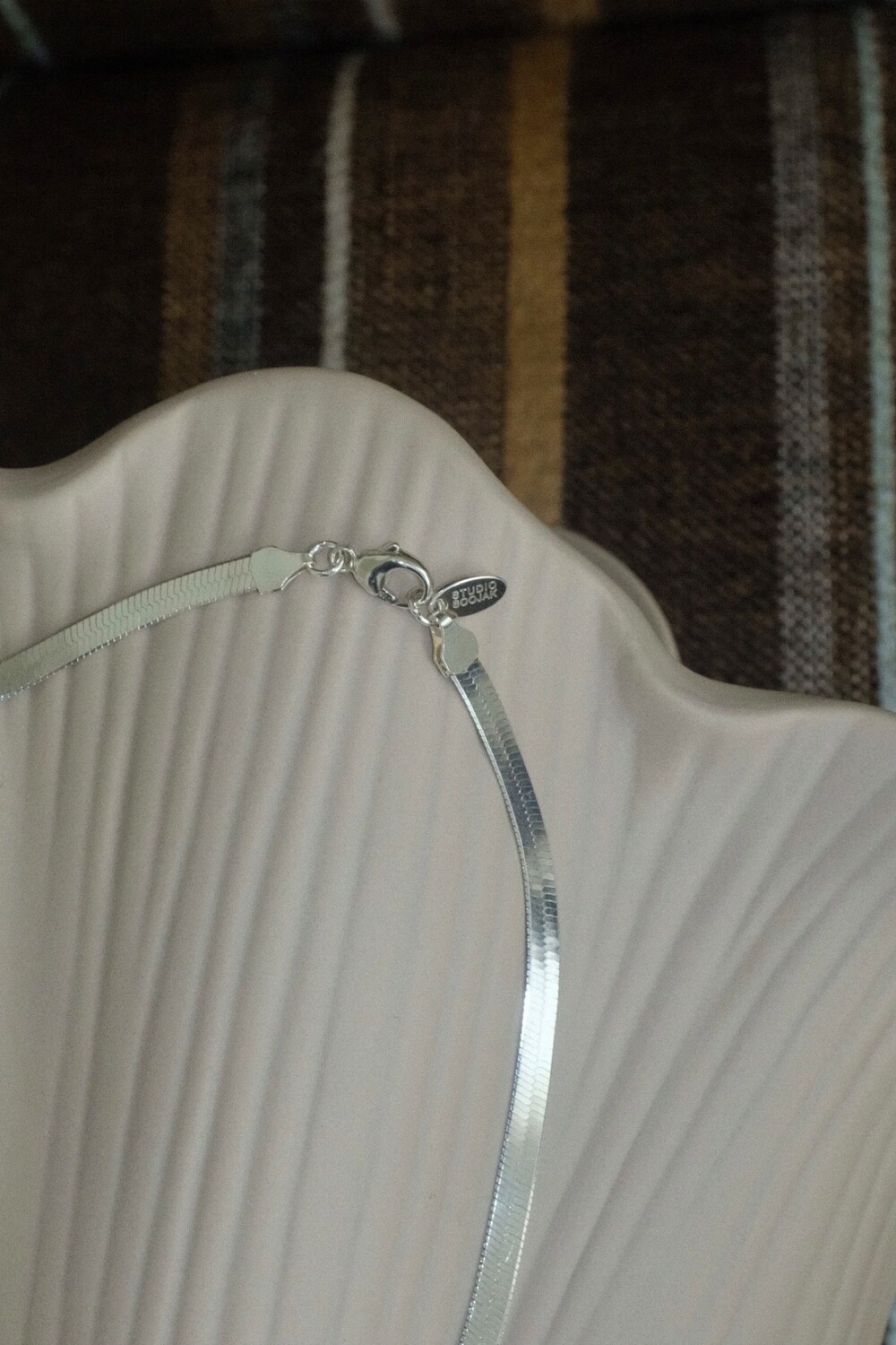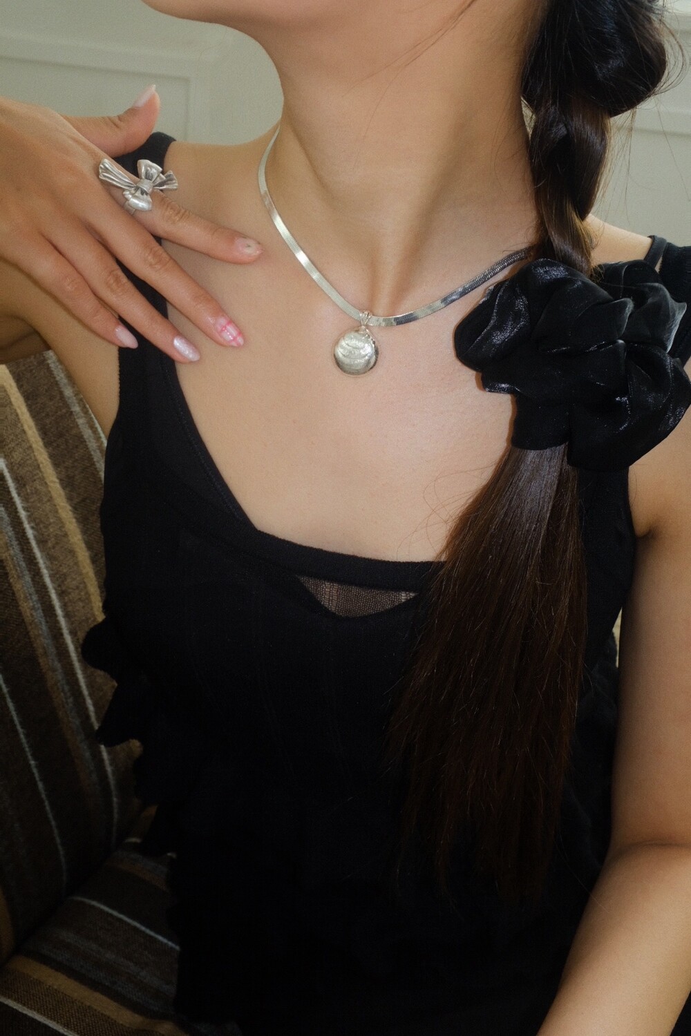 발리 바닷가에서 주운 조개껍데기 모양 그대로 깎아 제작된 제품입니다. 4mm 스네이크 줄이 네크라인에 우아하게 떨어지기 때문에 드레시한 착장이나 스윔웨어 어디든 잘 어우러질 수 있는 제품입니다.