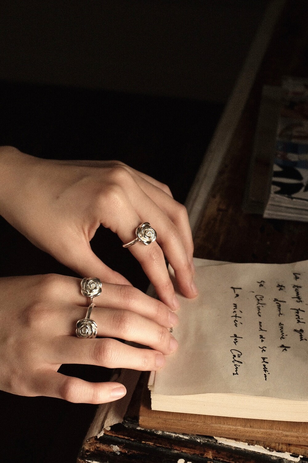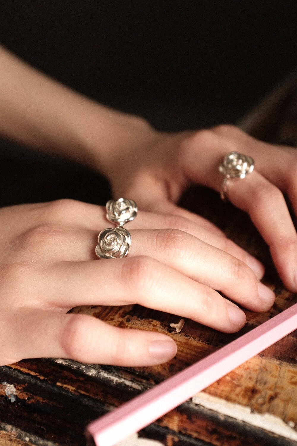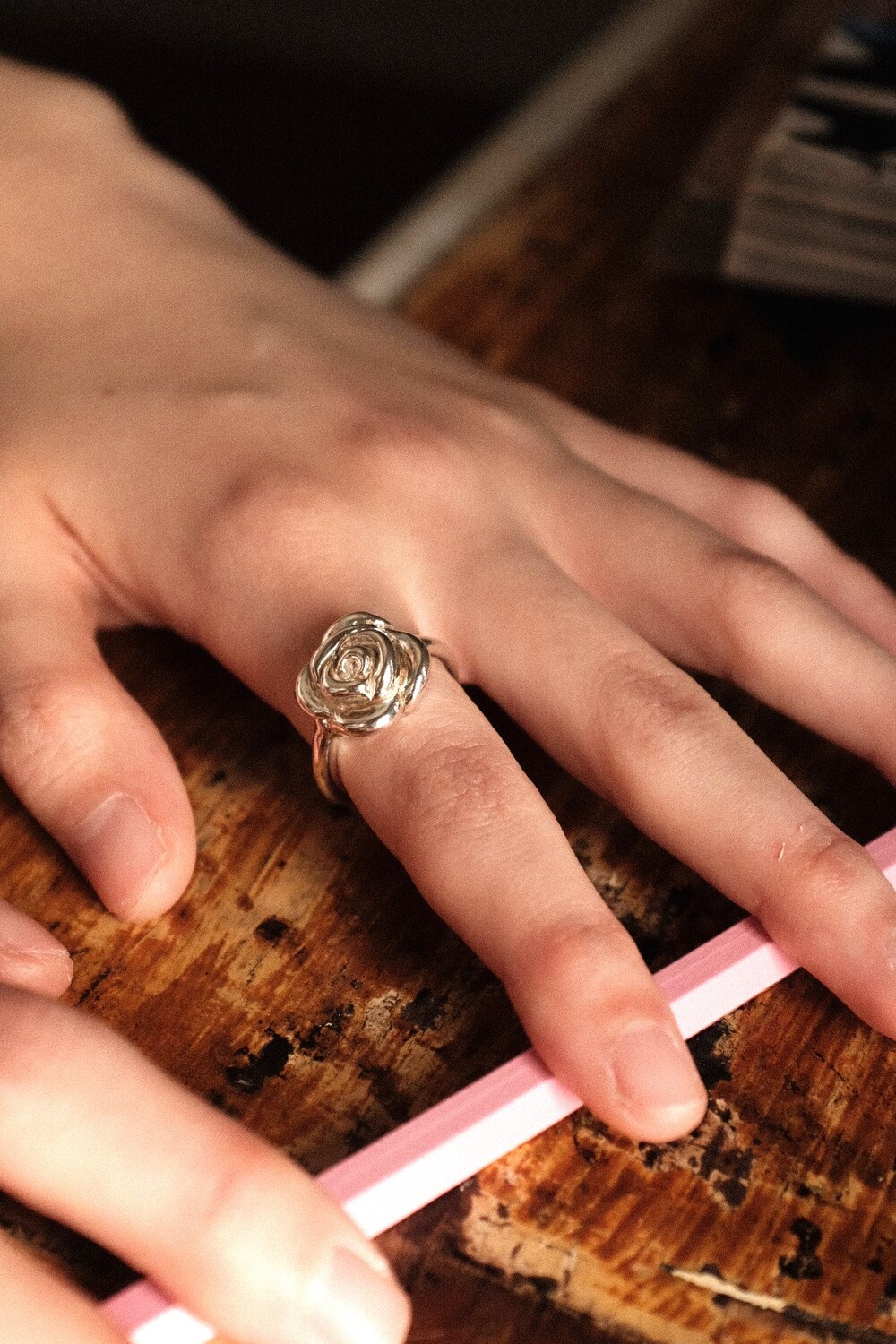 화려하고 입체적인 장미를 모티프로 볼드함을 살려 제작된 반지 입니다.